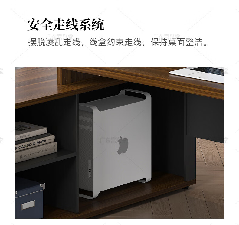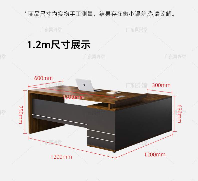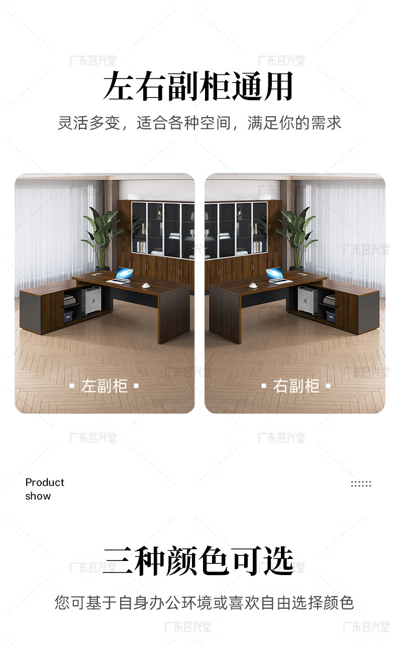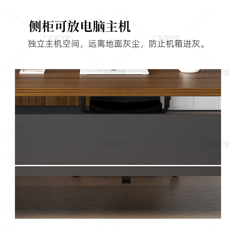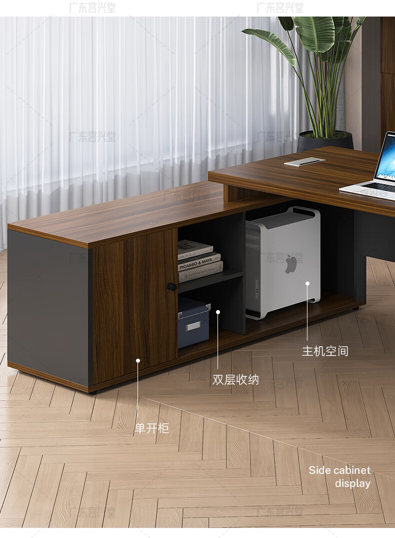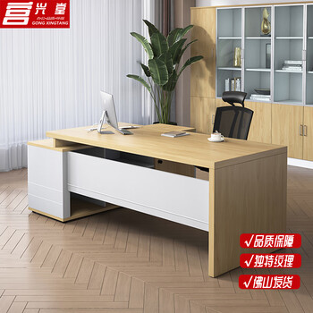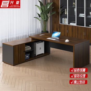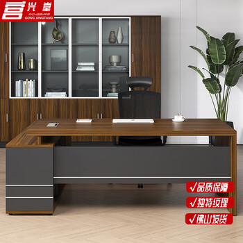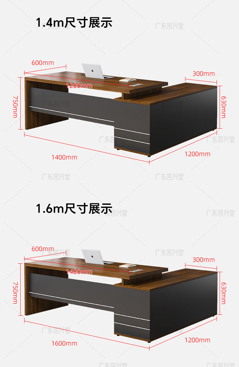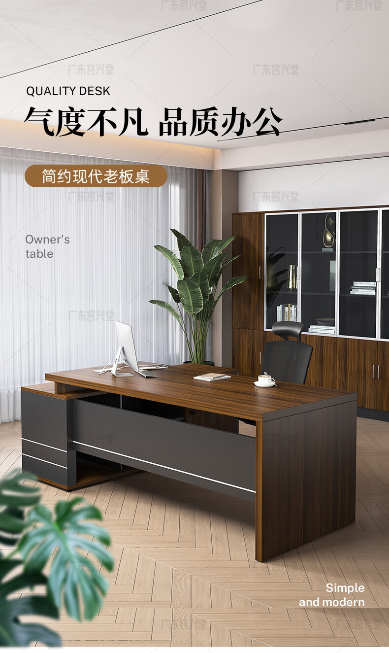 宫兴堂办公桌老板桌办公室现代简约办公家具单人大班台总裁经理主管桌1.6米桌红胡桃+铁灰