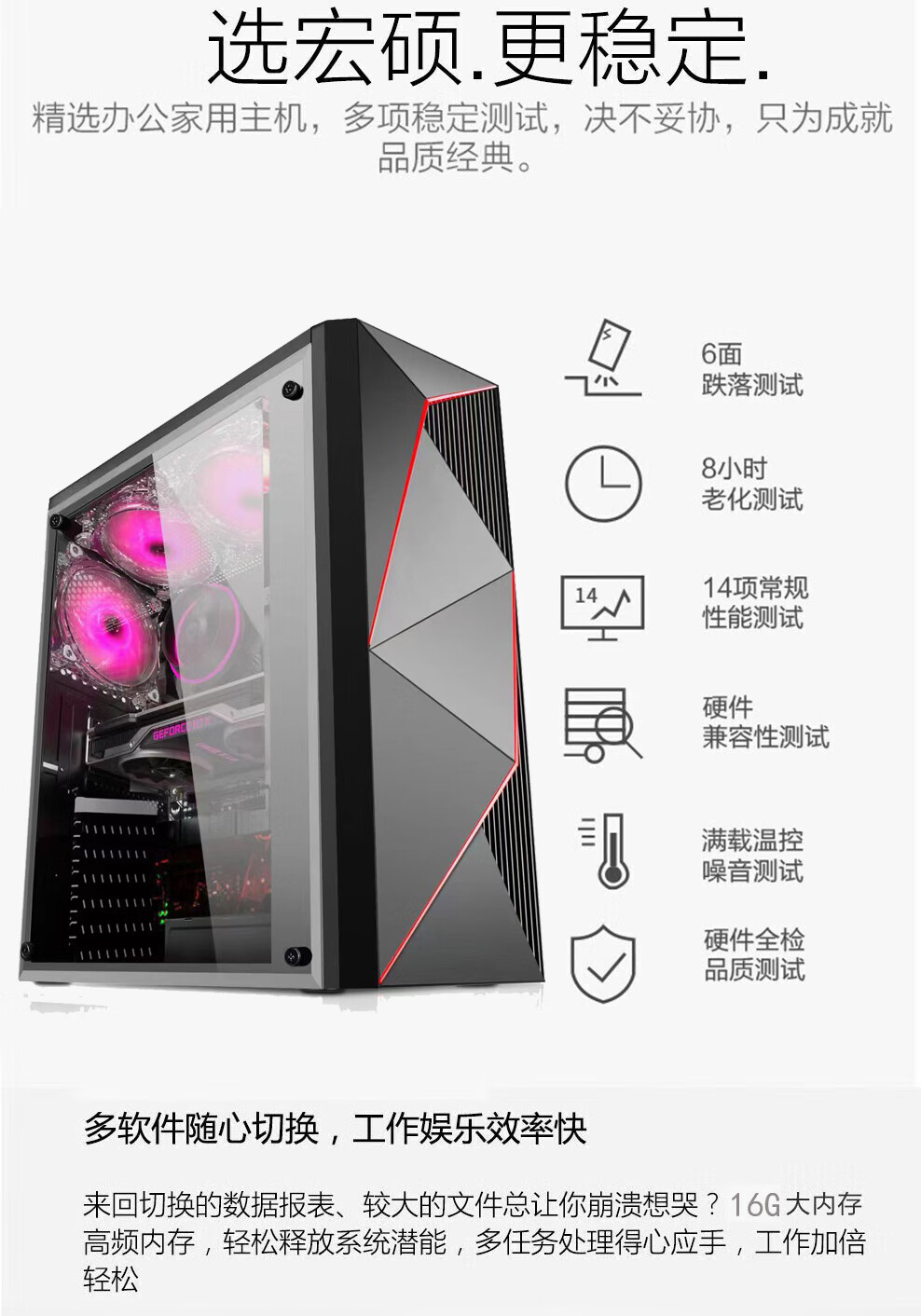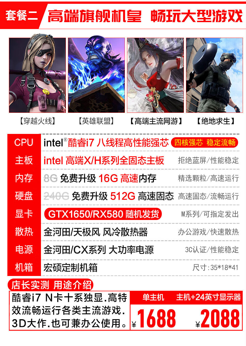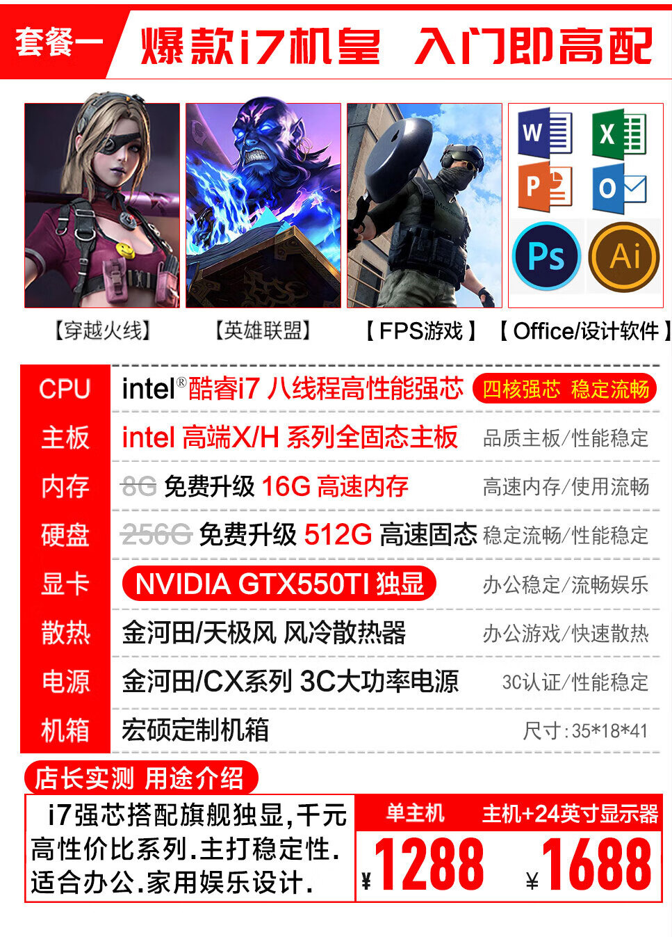 宏硕英特尔酷睿i7/十八核/RTX3060/独立显卡/台式机电脑主机家用游戏办公组装电脑整机全套套餐二酷睿i7丨GTX1650主机+24英寸显示器