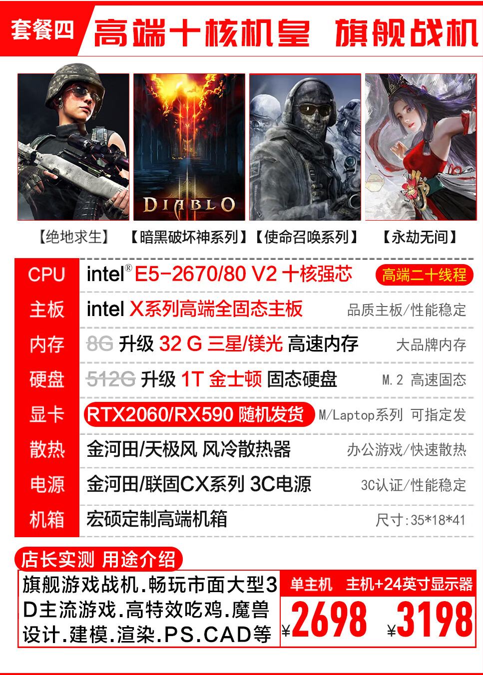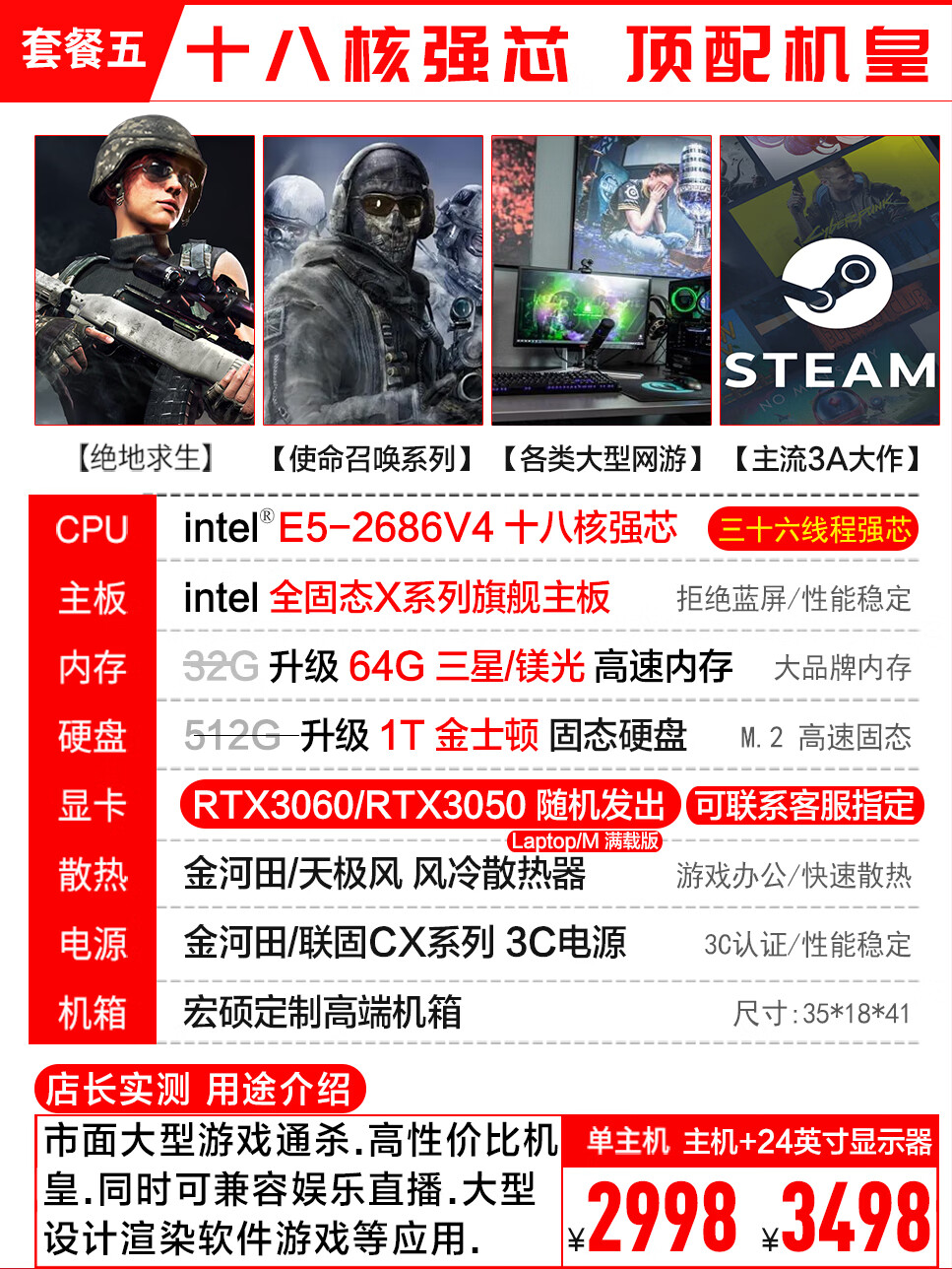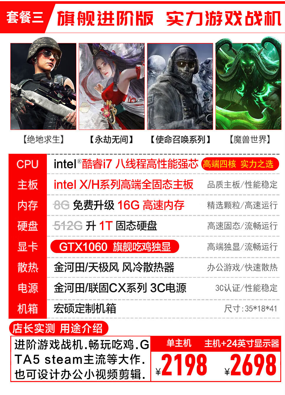 宏硕英特尔酷睿i7/十八核/RTX3060/独立显卡/台式机电脑主机家用游戏办公组装电脑整机全套套餐二酷睿i7丨GTX1650主机+24英寸显示器