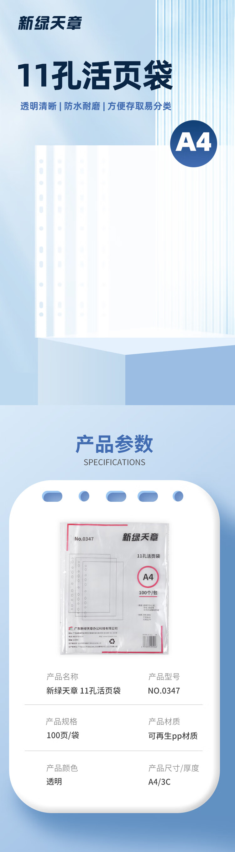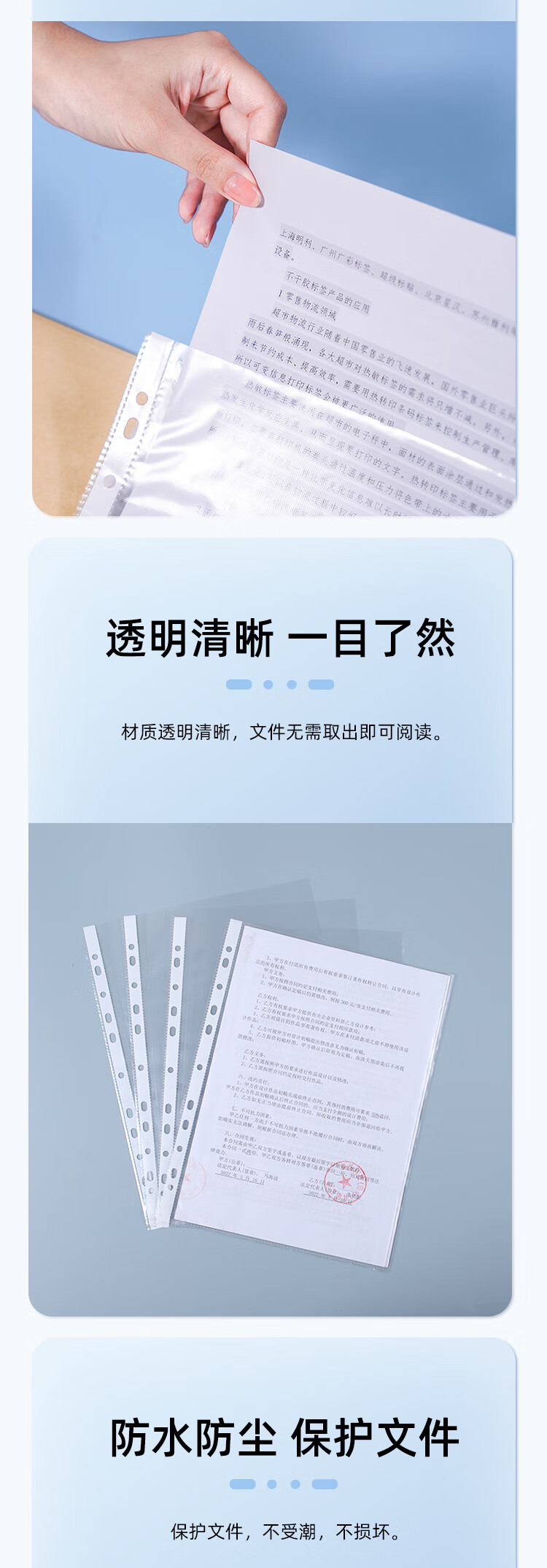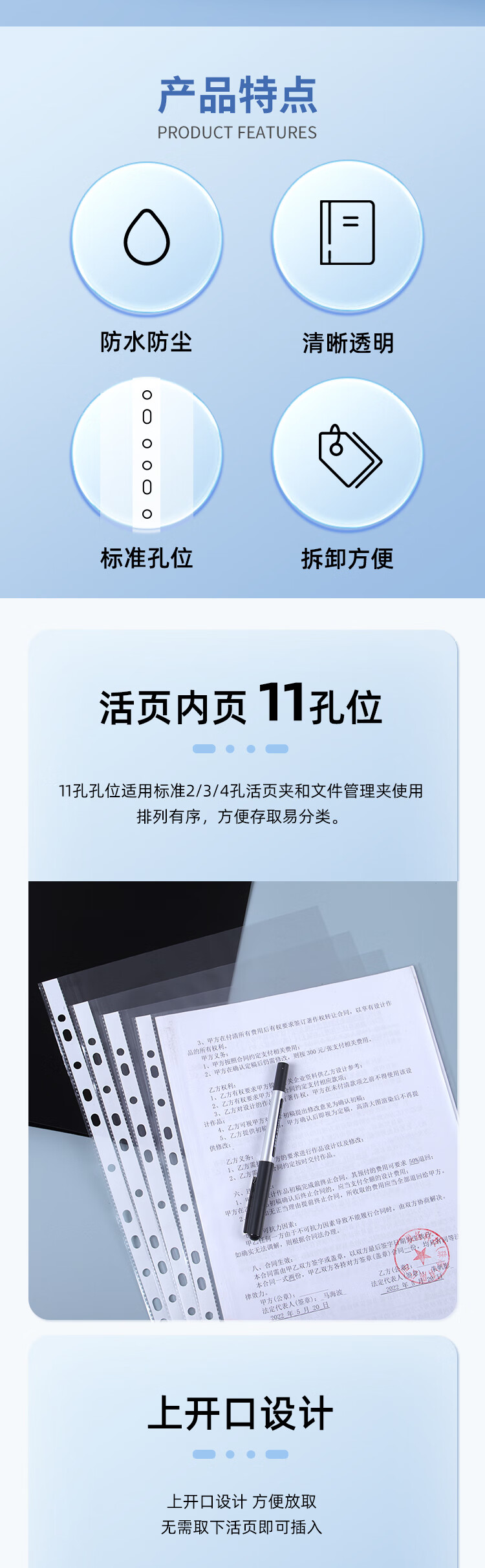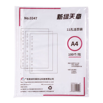 ¥28.00【全网低价】天章办公(TANGO)11孔文件袋A4透明袋100个装资料册替芯活页袋合同十一孔文件保护袋快递票据防水收纳袋插页夹