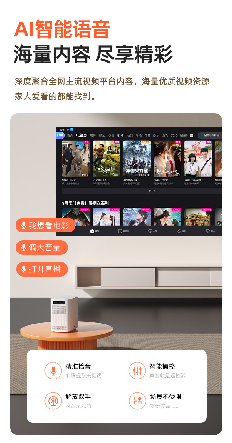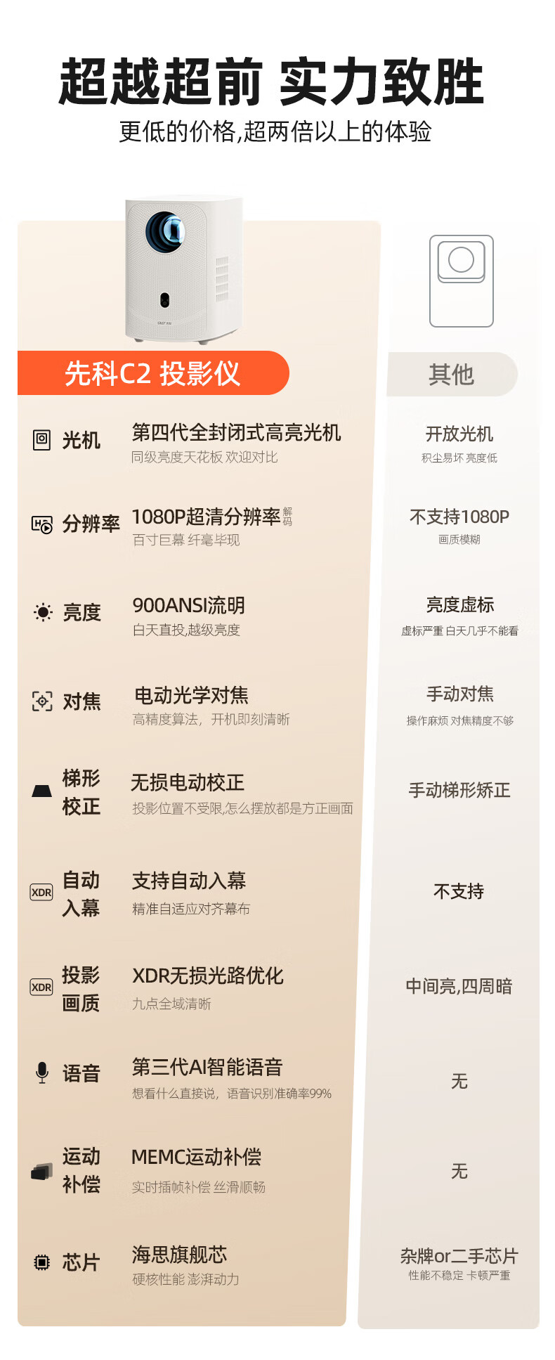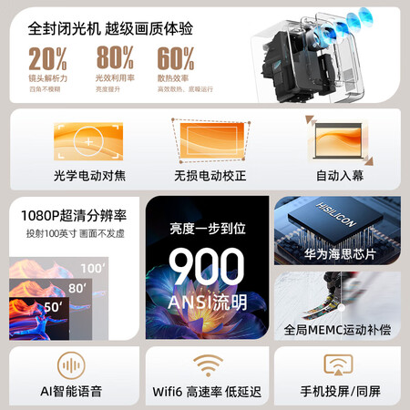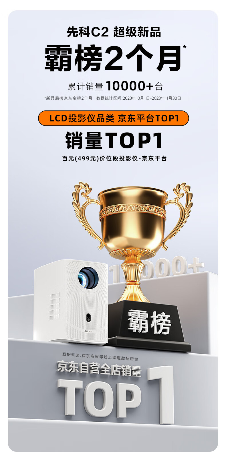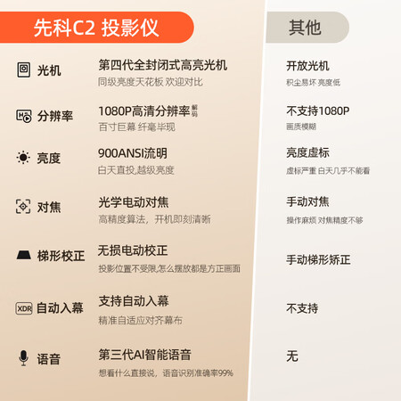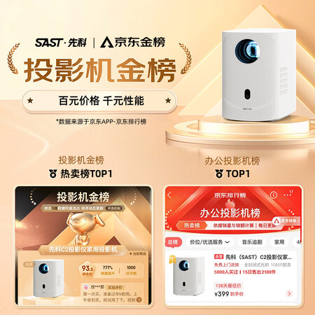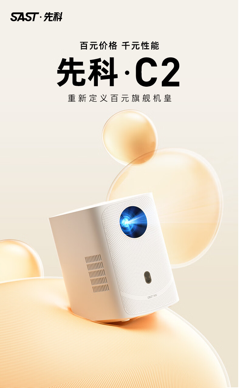先科(SAST)C2投影仪家用智能投影机便携卧室手机投影(全封闭式光机超清画质自动对焦自动入幕)