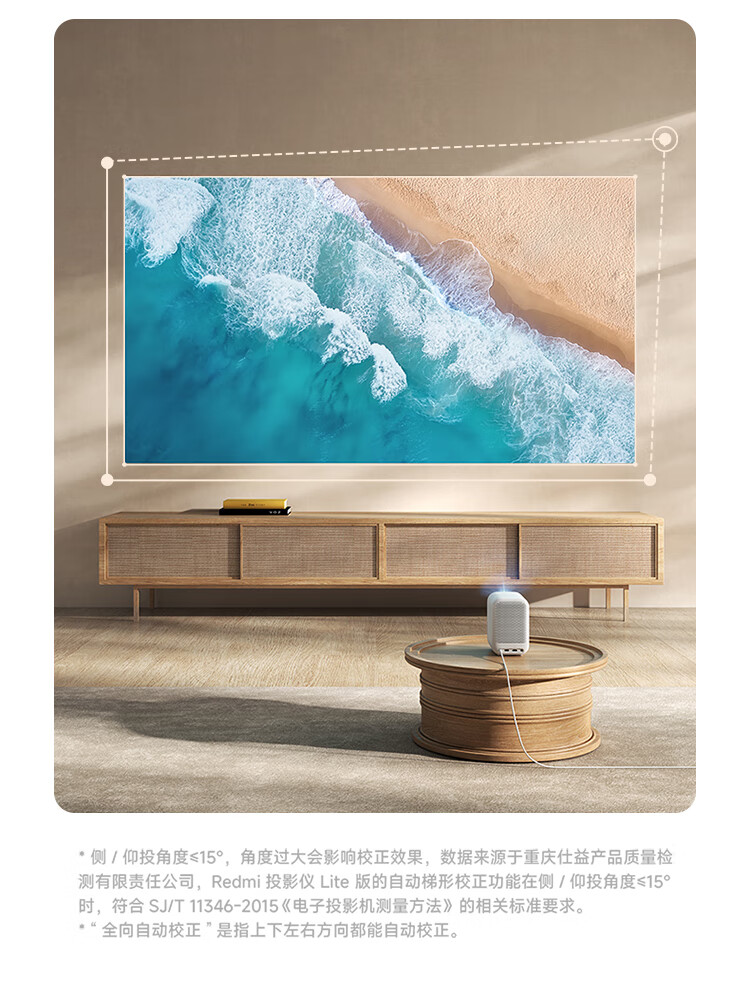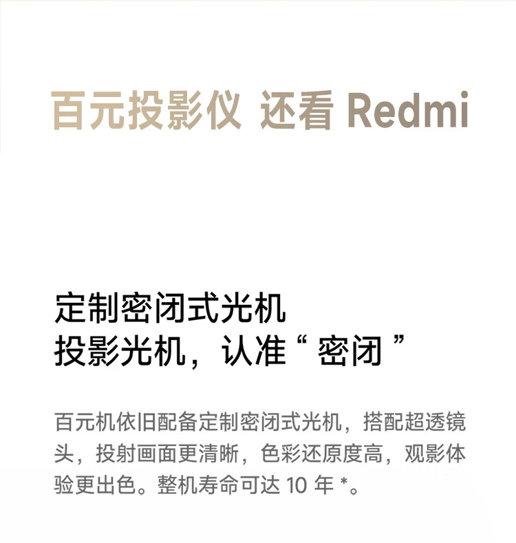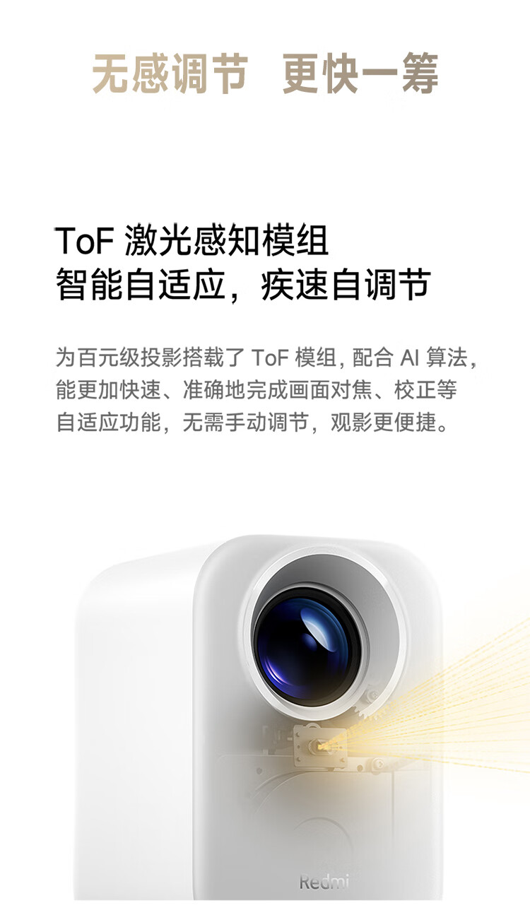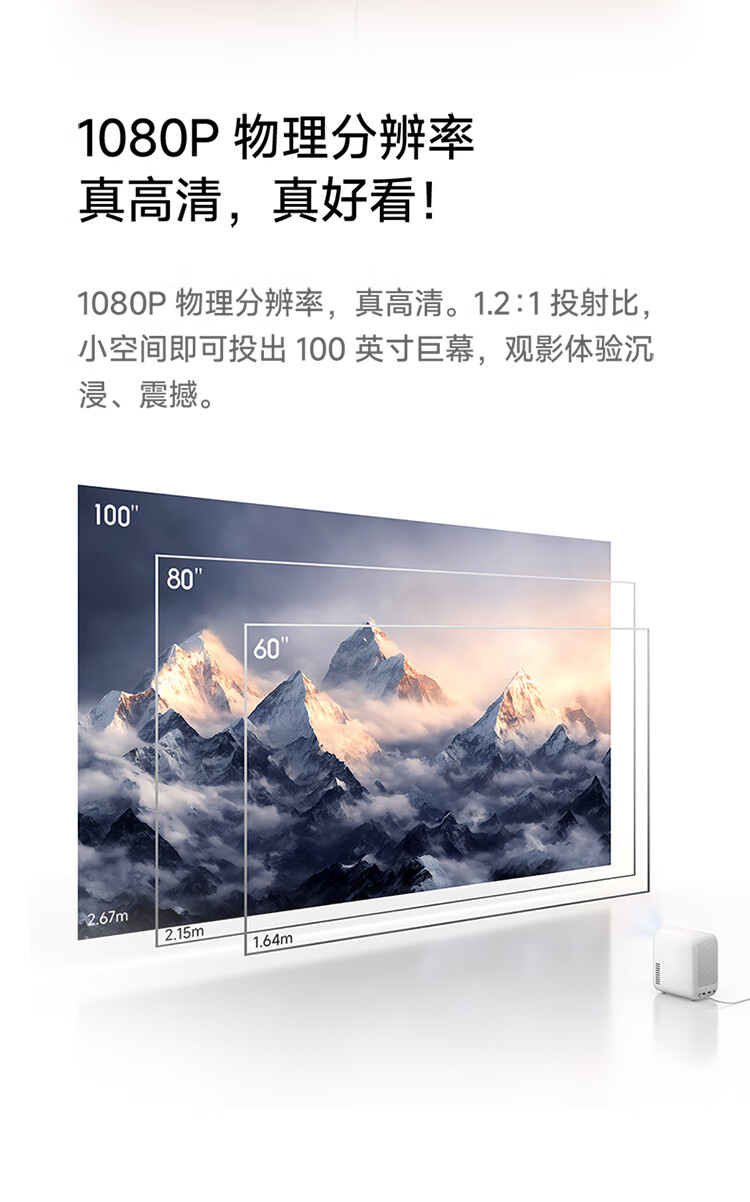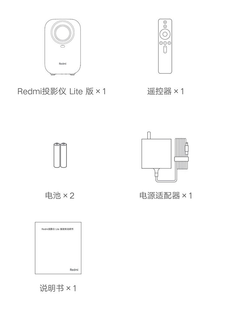 小米投影仪RedmiLite版投影仪家用智能家庭影院无感对焦无感校正1080P物理分辨率MIUI系统