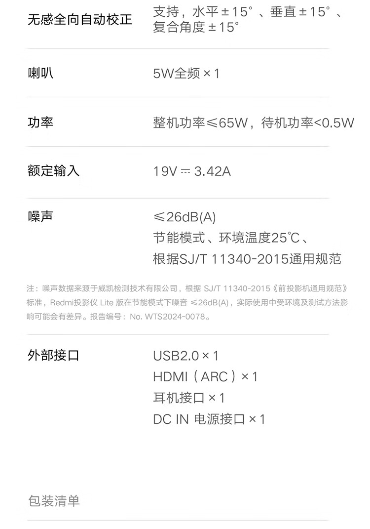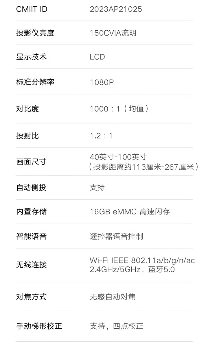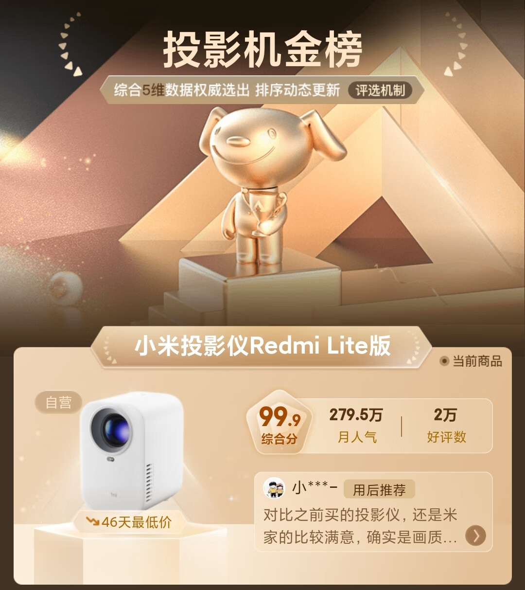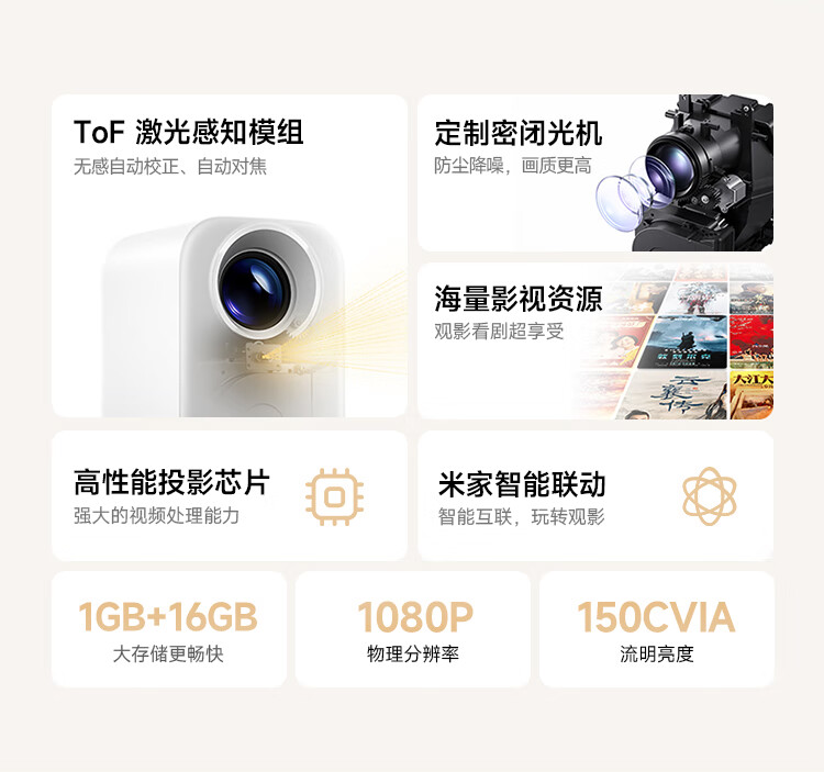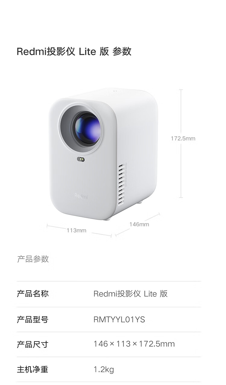小米投影仪RedmiLite版投影仪家用智能家庭影院无感对焦无感校正1080P物理分辨率MIUI系统