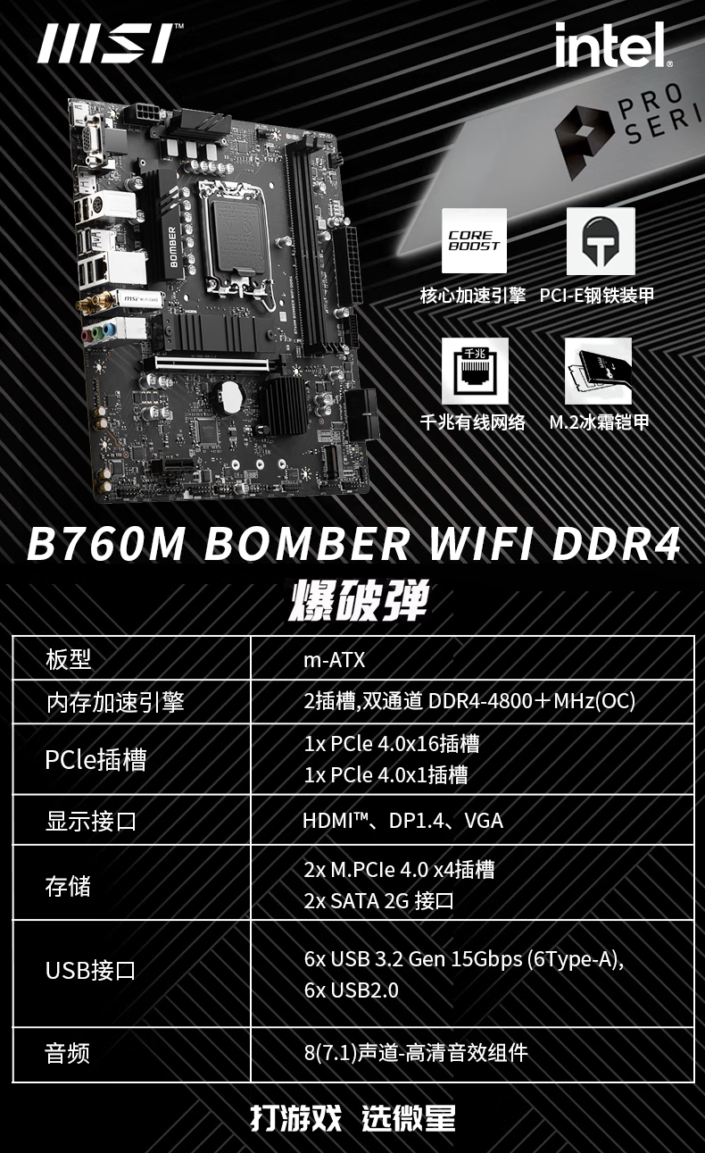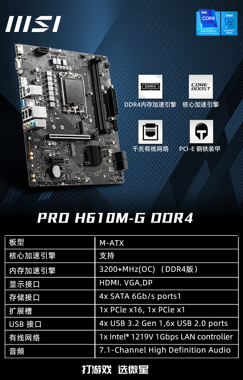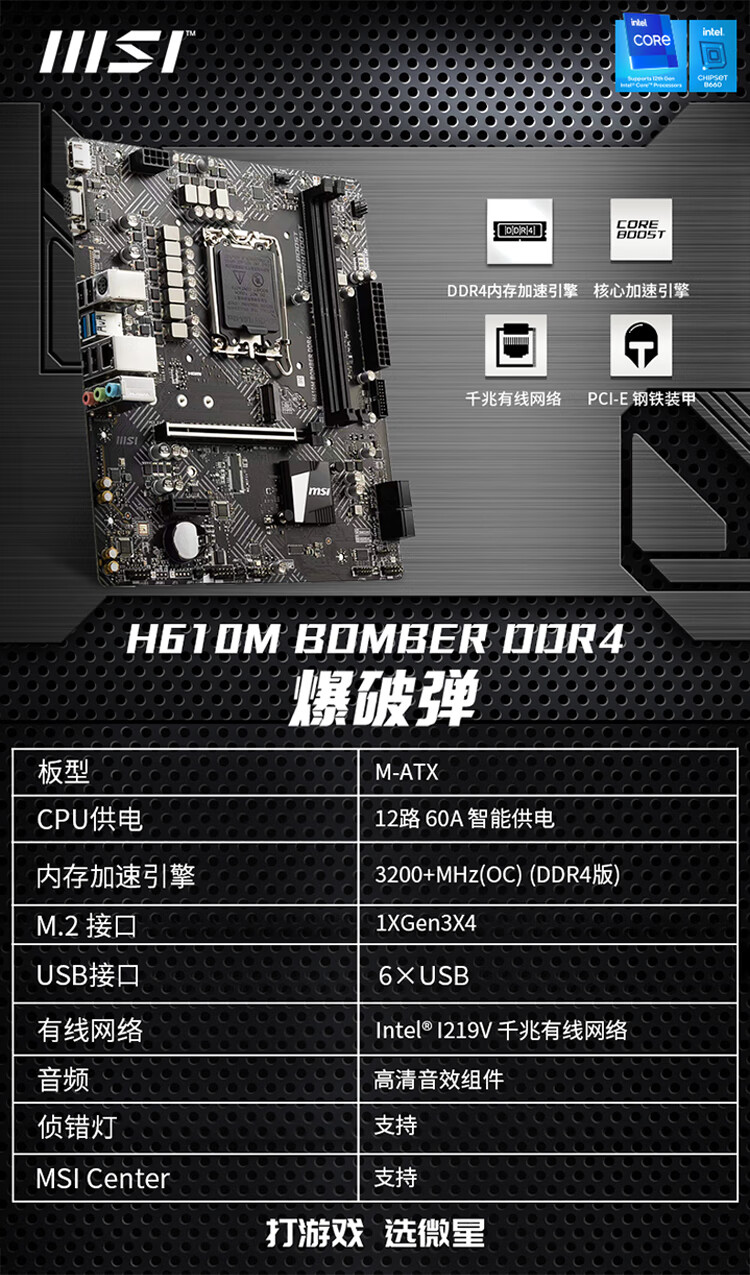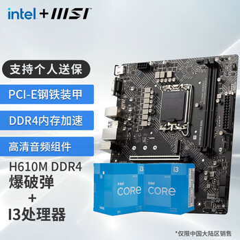 微星(MSI)B660H610主板搭英特尔酷睿I3盒装CPU套装H610MBOMBERDDR4I312100盒装