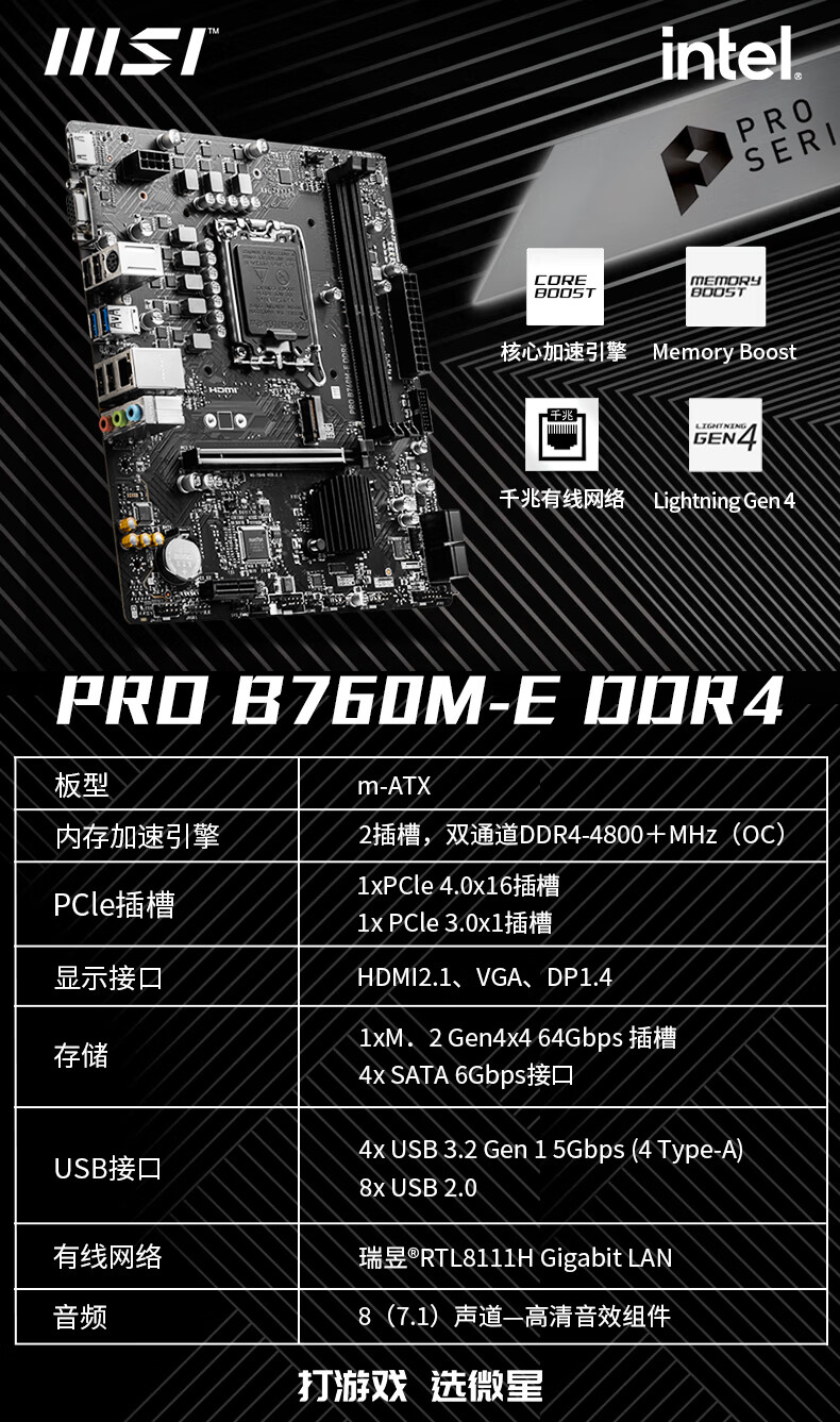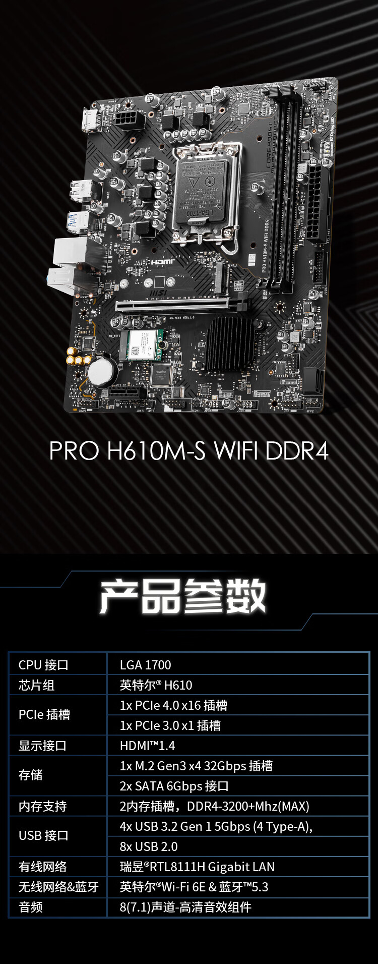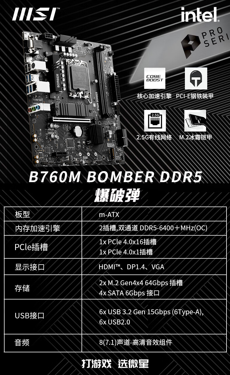 微星(MSI)B660H610主板搭英特尔酷睿I3盒装CPU套装H610MBOMBERDDR4I312100盒装