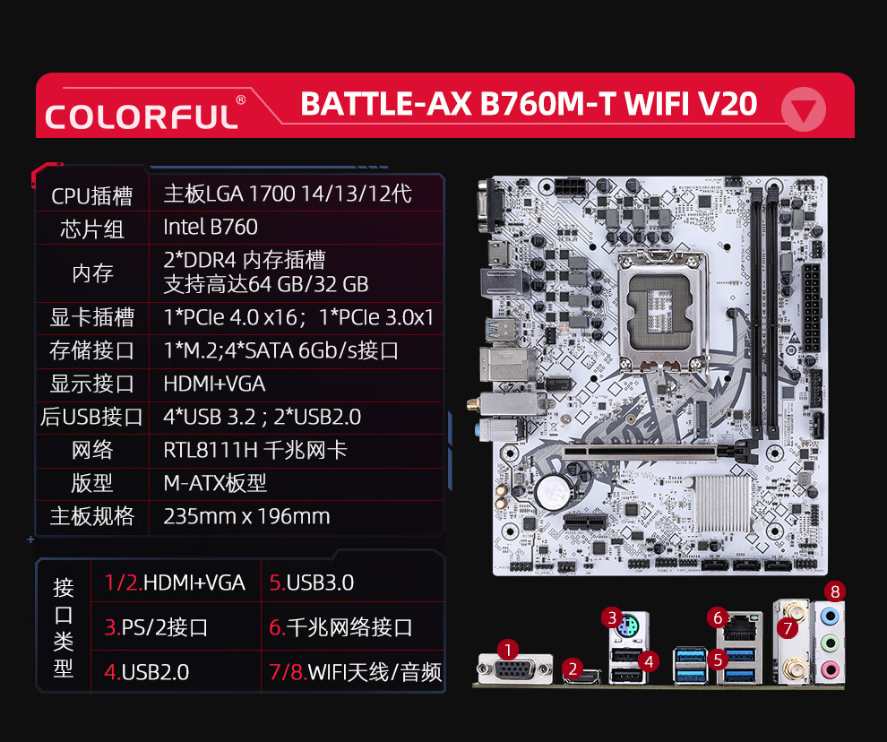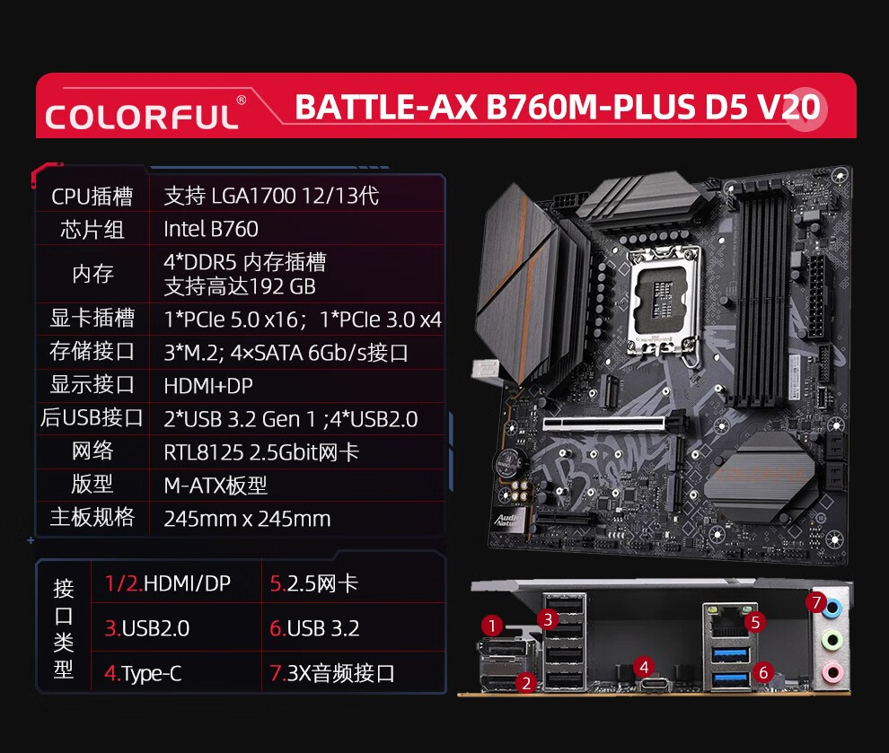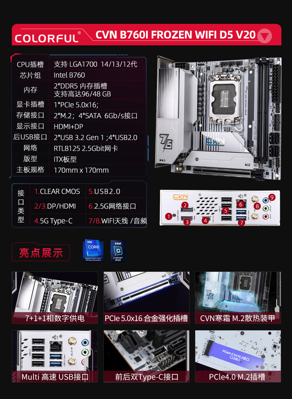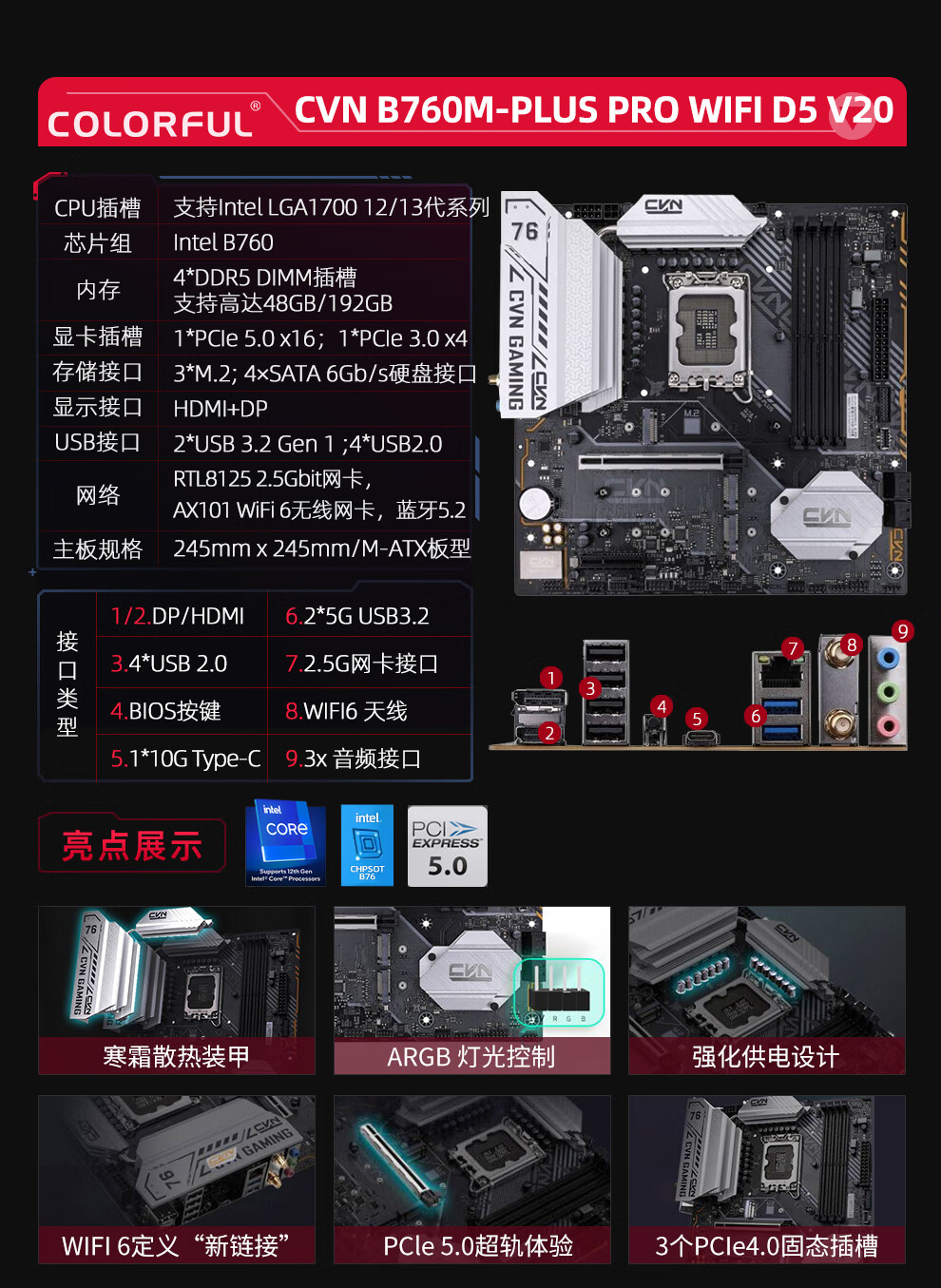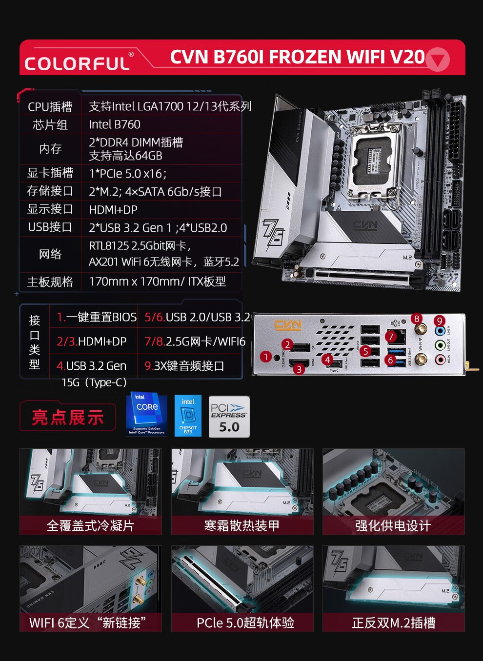 七彩虹(Colorful)英特尔(Intel)七彩虹Z790主板搭12/13代i513490F13600KF板u套装H610M-FEVOD4板u套装12代丨i512490F【6核