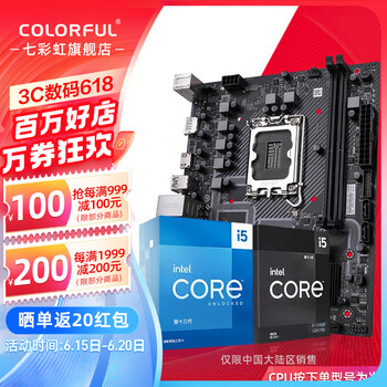 七彩虹(Colorful)英特尔(Intel)七彩虹Z790主板搭12/13代i513490F13600KF板u套装H610M-FEVOD4板u套装12代丨i512490F【6核