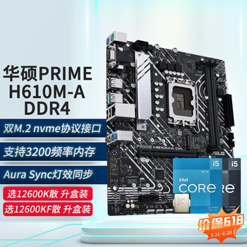 华硕(ASUS)12代CPU主板i512400f12490f12600kf散片盒装板U套装华硕H610M-ADDR412代i5-12400F散片【三年店保】
