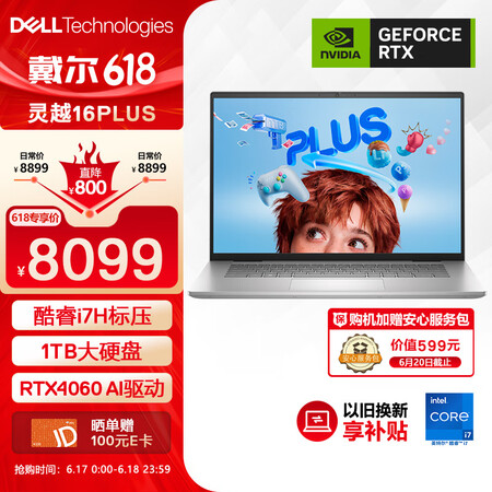 戴尔(DELL)笔记本电脑灵越16PLUS-763016英寸轻薄本办公商务游戏设计酷睿i7标压16G1TBRTX40602.5K