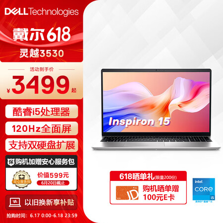 戴尔(DELL)笔记本电脑灵越353015.6英寸轻薄本商务办公本酷睿i516G512GB锐炬显卡120Hz高刷屏全面屏