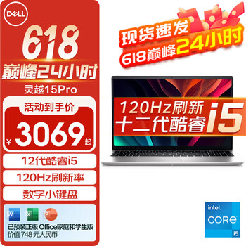 戴尔(DELL)灵越15Pro15.6英寸超极本学习办公游戏轻薄本便携商务家用手提笔记本电脑灵越352012代酷睿i5锐炬Xe显卡16G内存512G固态120HZ高刷【定制】