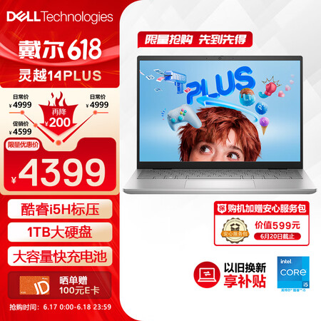 戴尔(DELL)笔记本电脑灵越14PLUS-743014英寸高性能轻薄本办公本商务游戏设计酷睿i5标压16G1TB2.5K