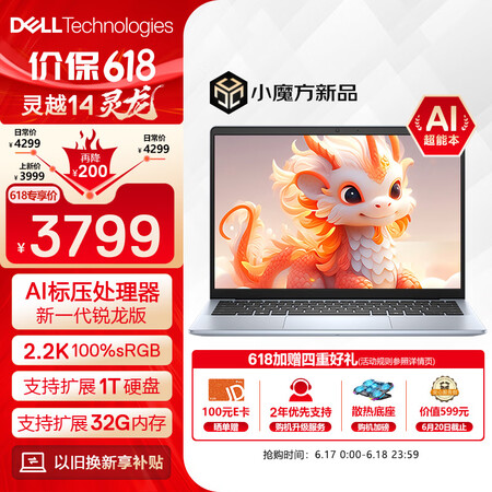 戴尔(DELL)灵龙笔记本电脑AI轻薄本灵越14-5445锐龙版高性能商务办公学生AMDR716G512G2.2K