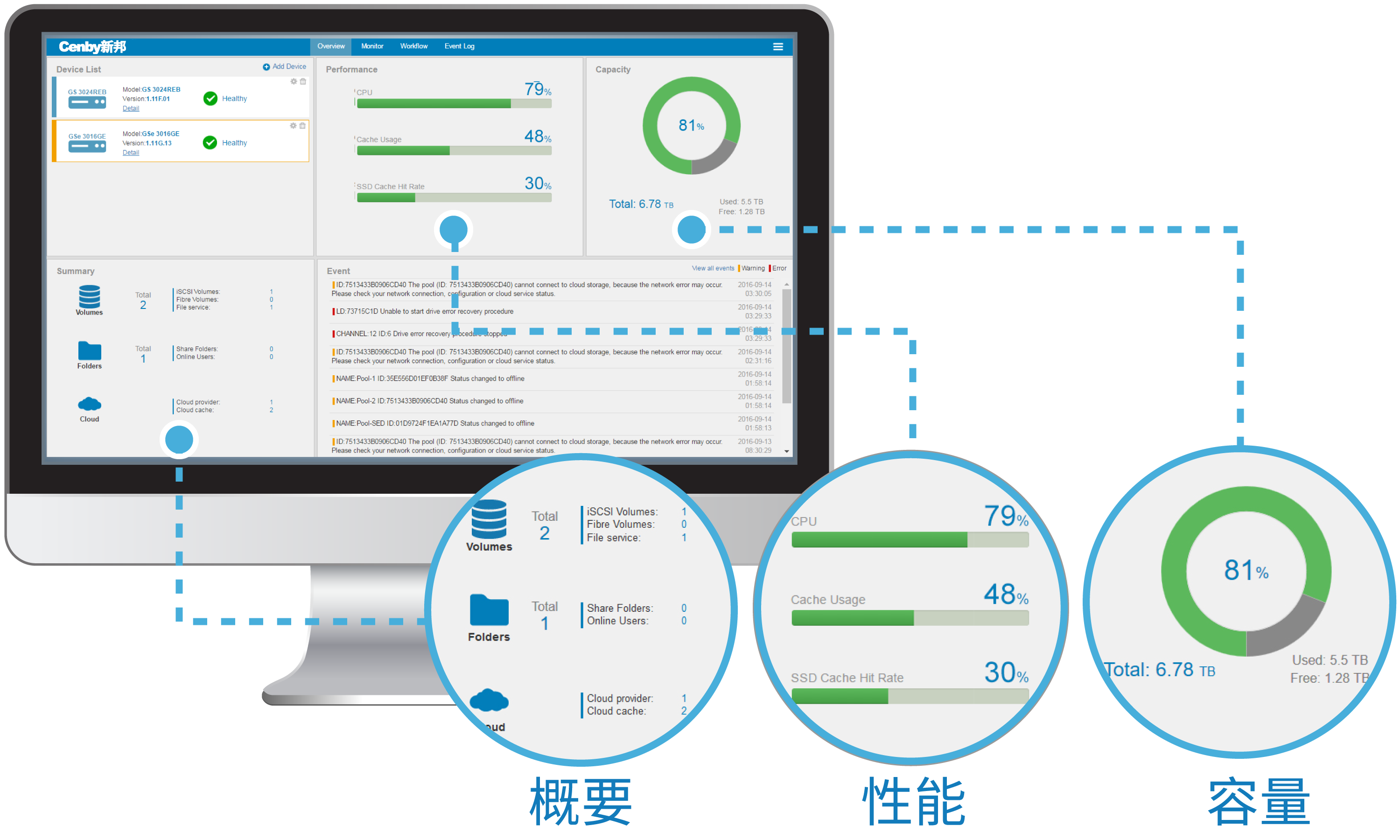 随着存储平台的不断发展,Cenby新邦MD1008统一存储GS 采用了全新的 EonOne 和 EonView 管理软件,帮助客户提高存储和服务效率,从而提高业务运行效率。