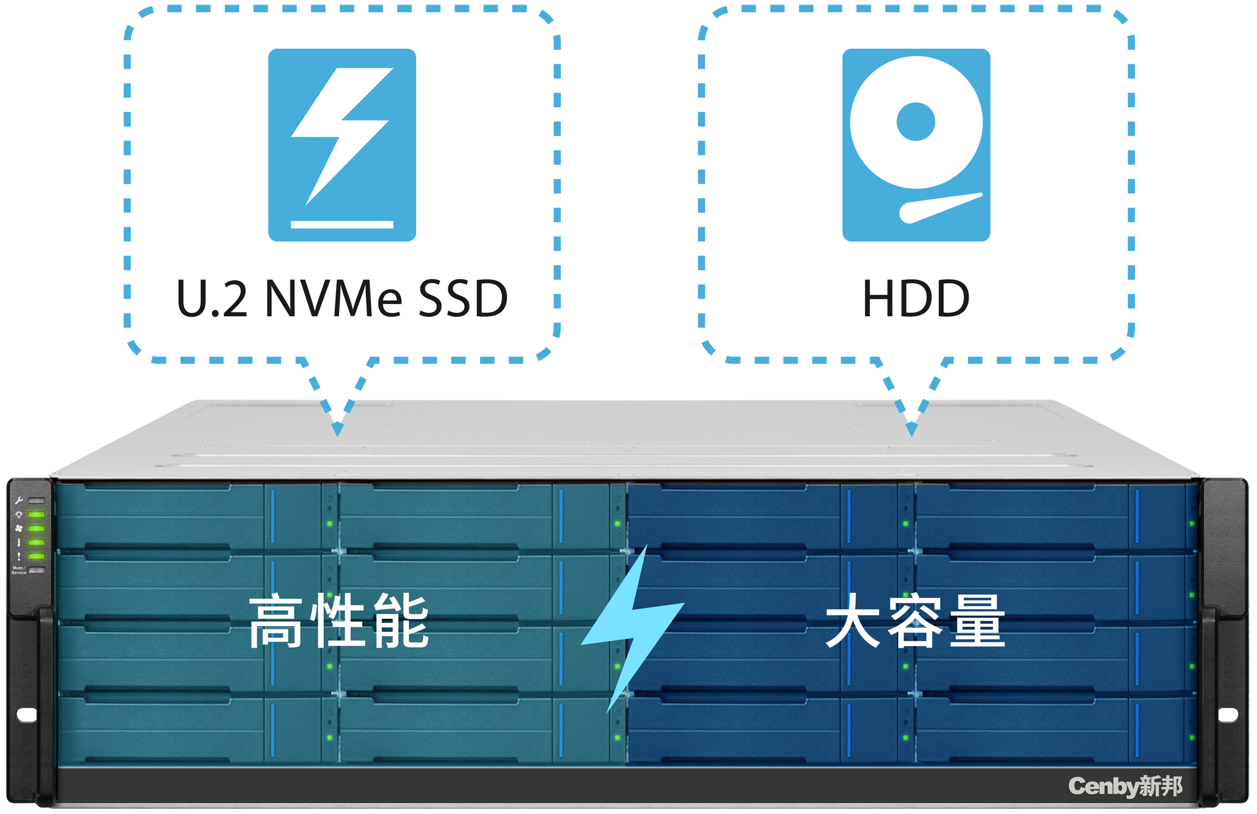 Cenby新邦GSe 产品线上不同机型的设备可以混合分层配置,形成理想的性能和容量组合。例如,您可以将高性能的 GSe 4000 和高性价比的 GSe 1000 组成集群,实现高性能数据访问和大容量备份的完美兼顾。