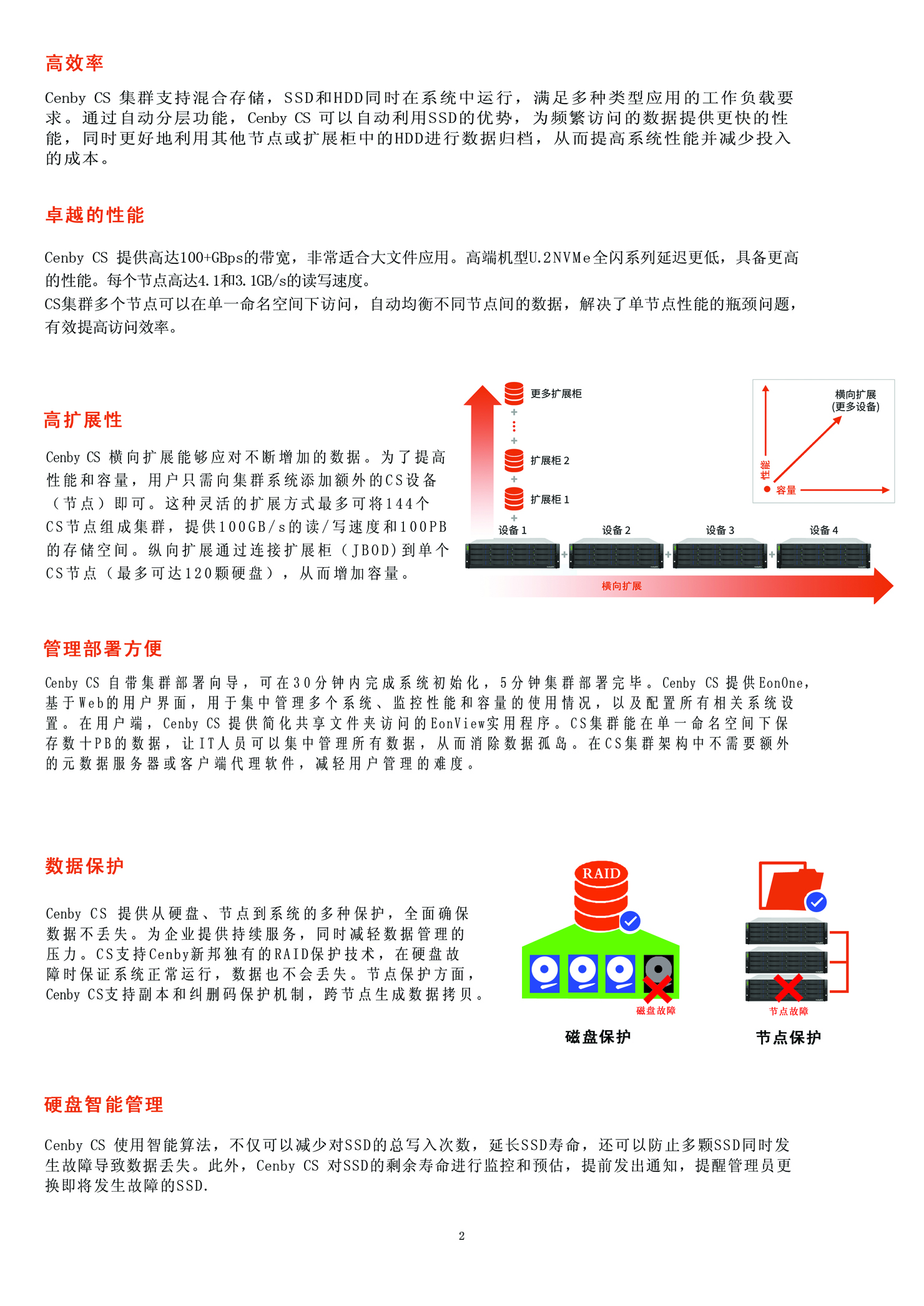 · 对于 SSD,Cenby新邦有意对写入数据的 SSD 进行差异化处理,不会影响整体性能,同时消除多颗 SSD 同时故障造成数据丢失。