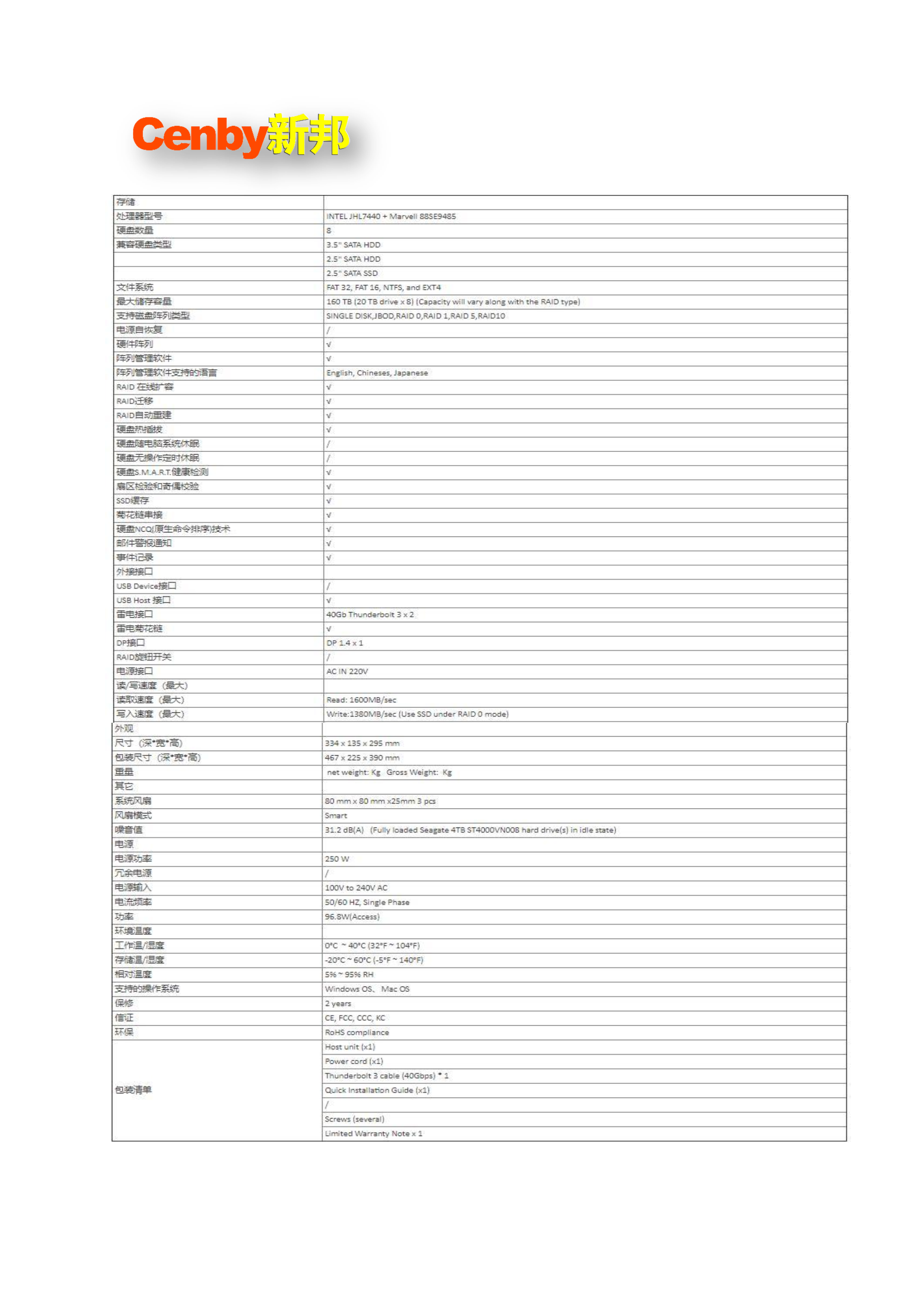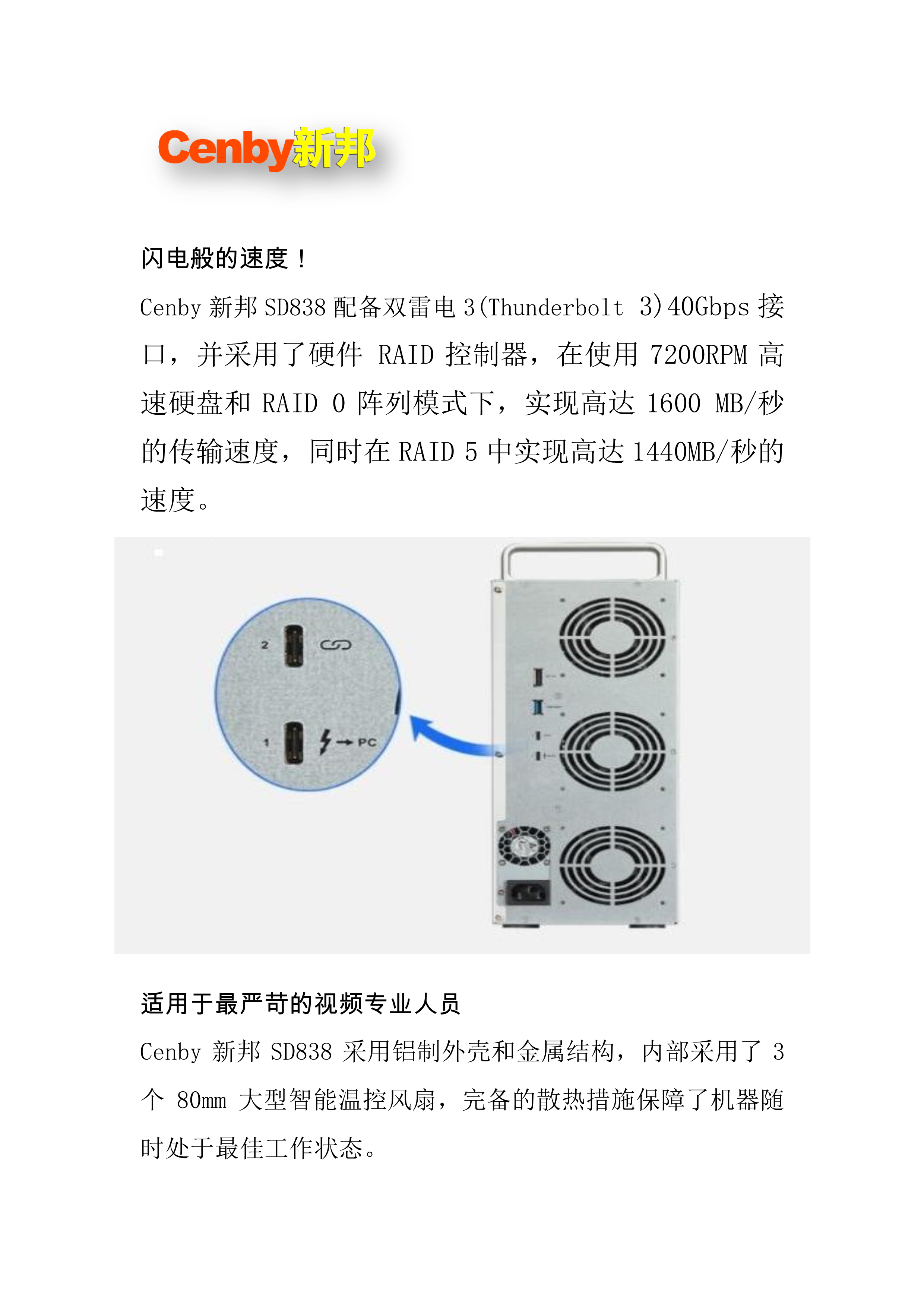 Cenby新邦SD838影视非编(雷电口)存储 自营