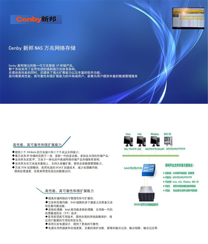 ¥600000.00Cenby新邦 NS-401 统一存储设备(全闪) 4U24 盘位 双控制器 国产海光 8 核 64GB 缓存 万兆 + 千兆接口 企业级数据存储