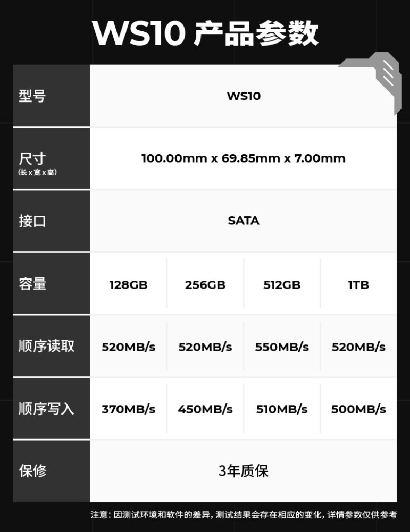 ¥174.00WALKDISK WS10 2.5英寸SSD固态硬盘全容量 SATA 高速读写传输兼容台式笔记本电脑 1TB