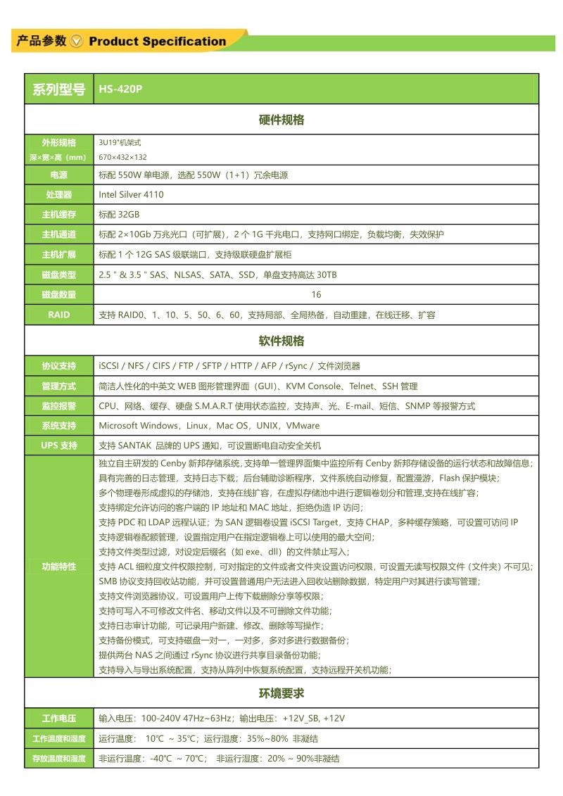 Cenby新邦HS-420P 16盘位单电高性价比万兆网络存储 自营