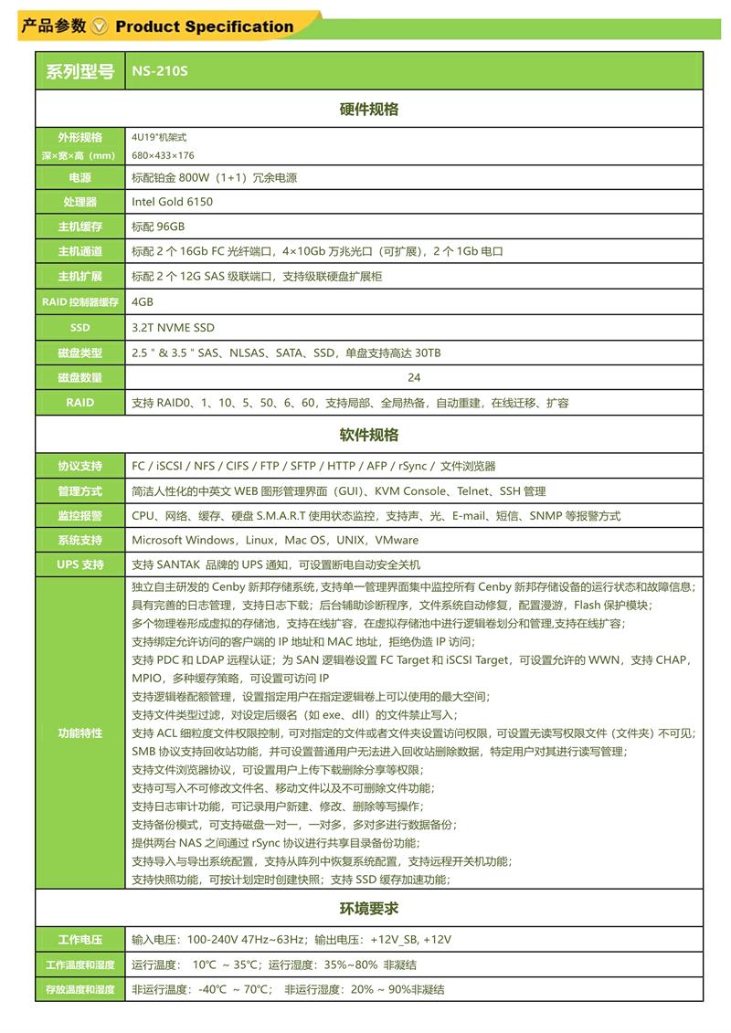 新邦(Cenby)NS-210S 24盘位双电高性价比万兆网络存储 自营