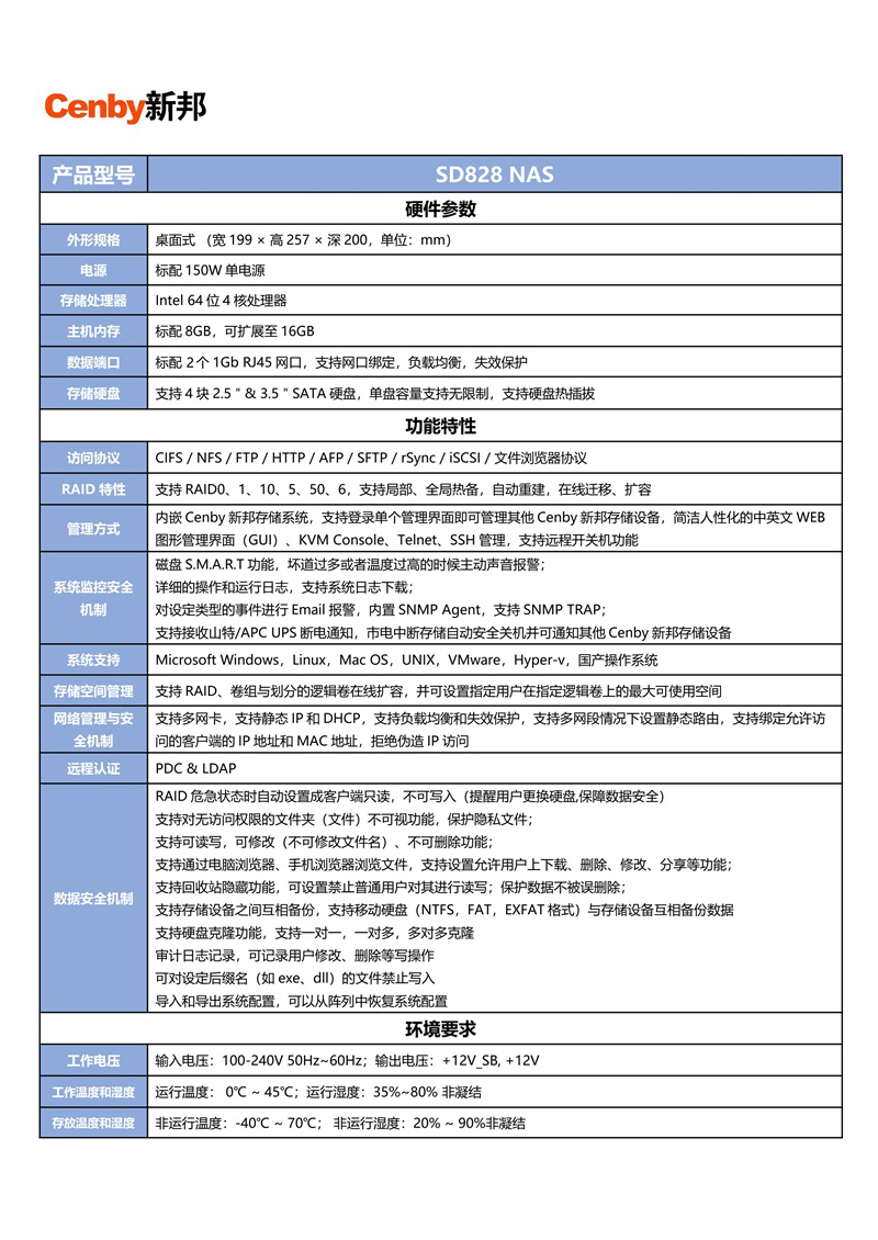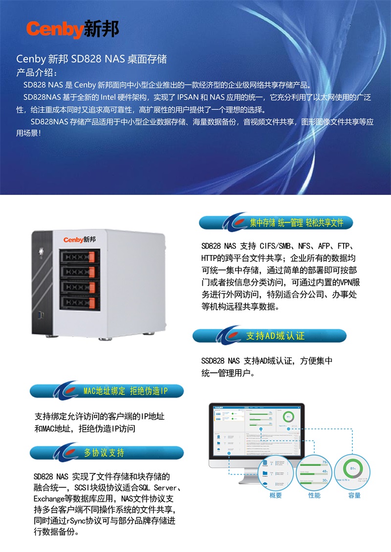 ¥800000.00Cenby新邦 NS-401S 统一存储设备(全闪) 4U24 盘位 双控制器 国产海光16核 128GB 缓存 万兆 + 千兆接口 企业级数据存储
