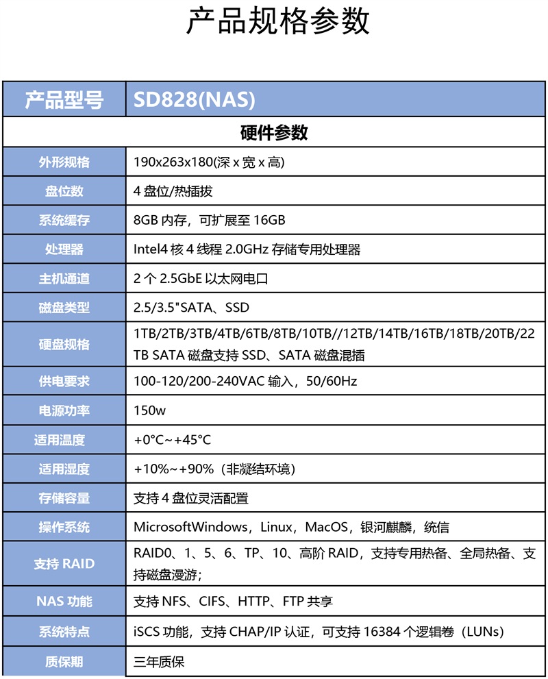 ¥137500.00SD828(NAS)网络存储四核心四盘位NAS网络存储服务器硬盘混插国产央采入围品牌专家服务120TB