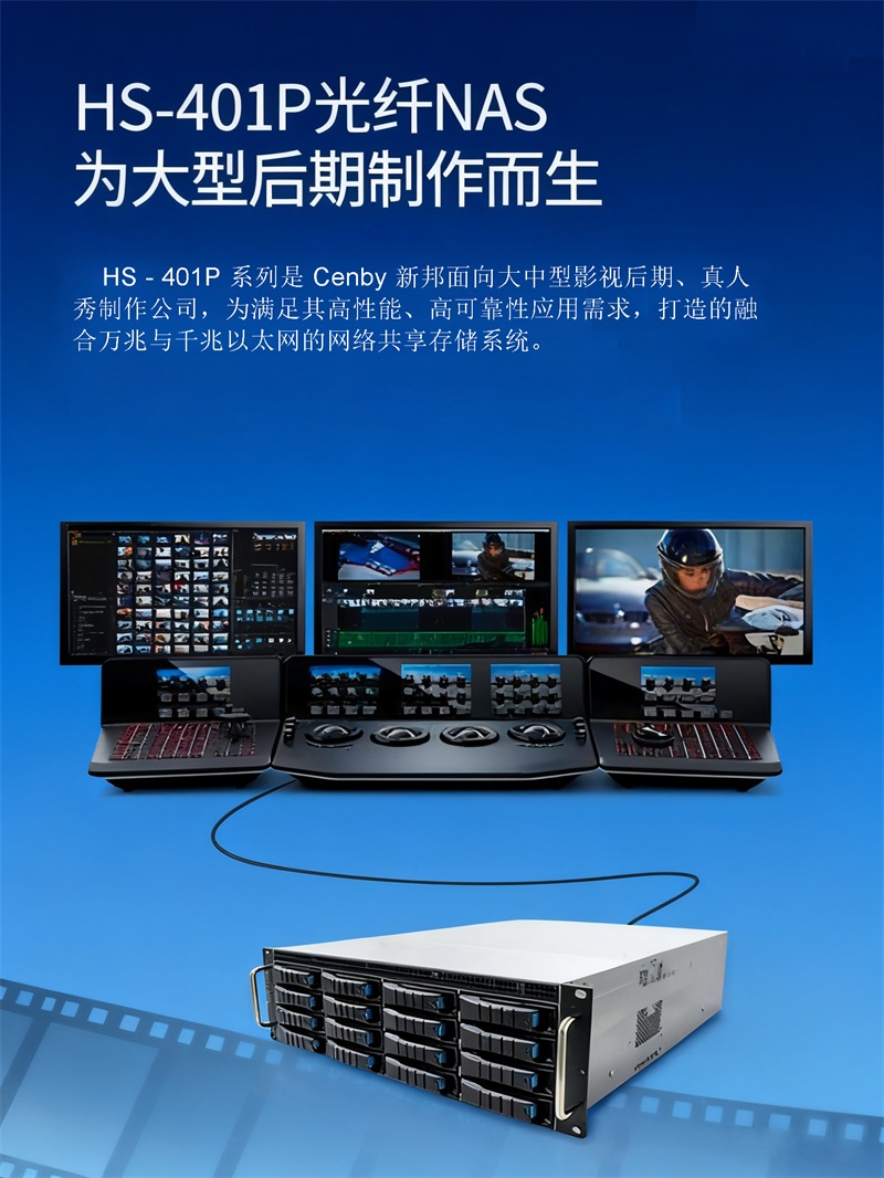 ¥230500.00Cenby新邦HS-401P 4U24 盘位机架式影视后期制作共享存储(Intel Xeon Silver 处理器 / 64GB ECC 内存 / 25Gb SFP + 光纤口 / 支持 2640TB 扩展 / 三年质保)