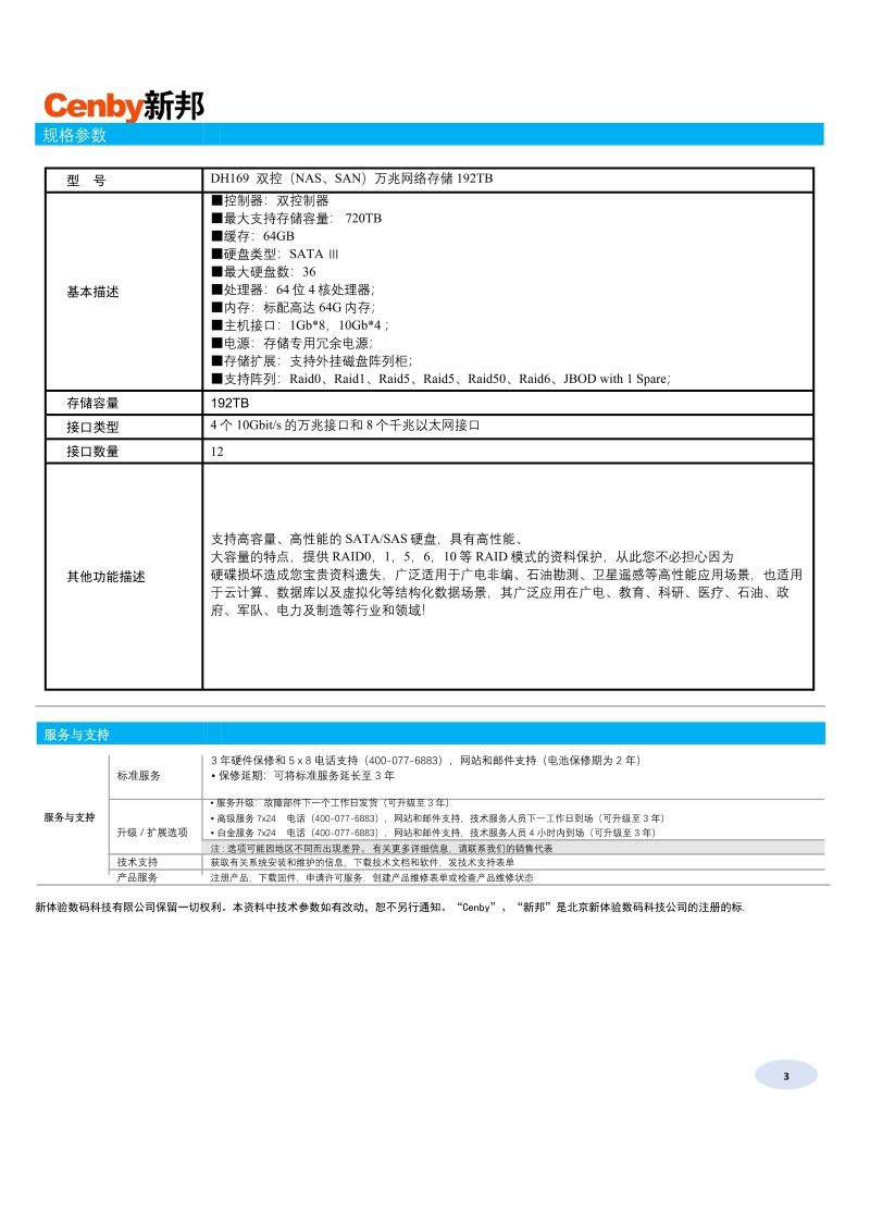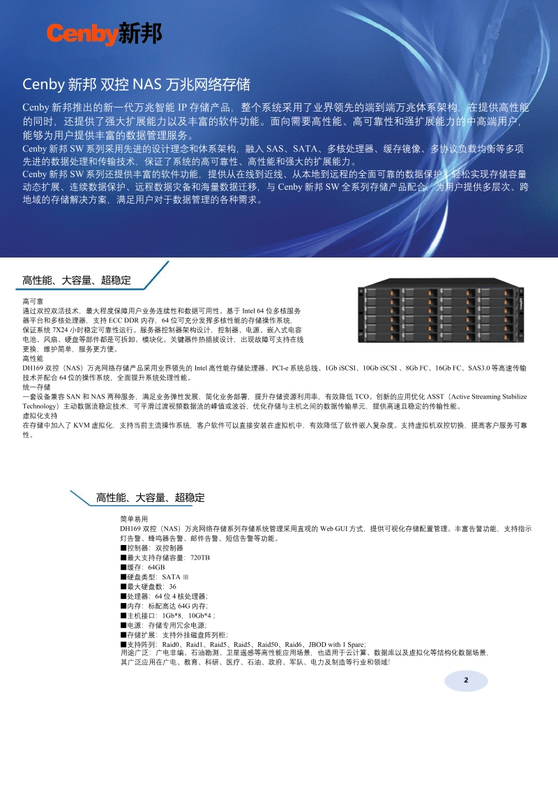 Cenby新邦 DH169 双控万兆网络存储 192TB 自营