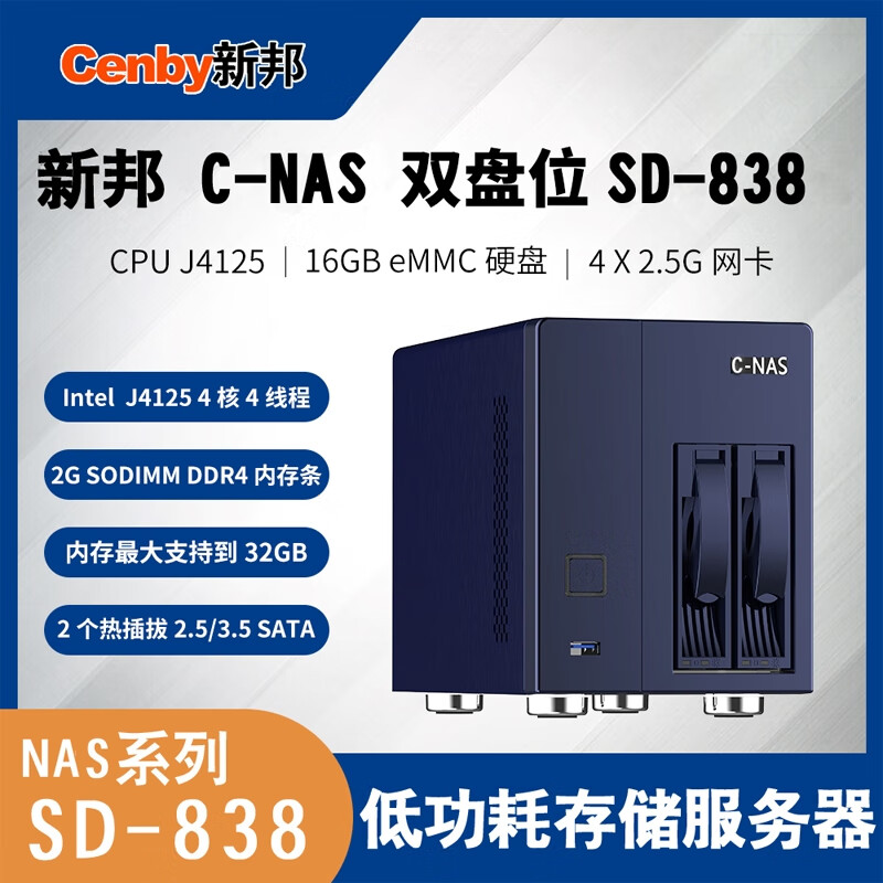 Cenby新邦SD838双盘位低功耗NAS文件存储服务器私有云NAS存储设备40TB 自营