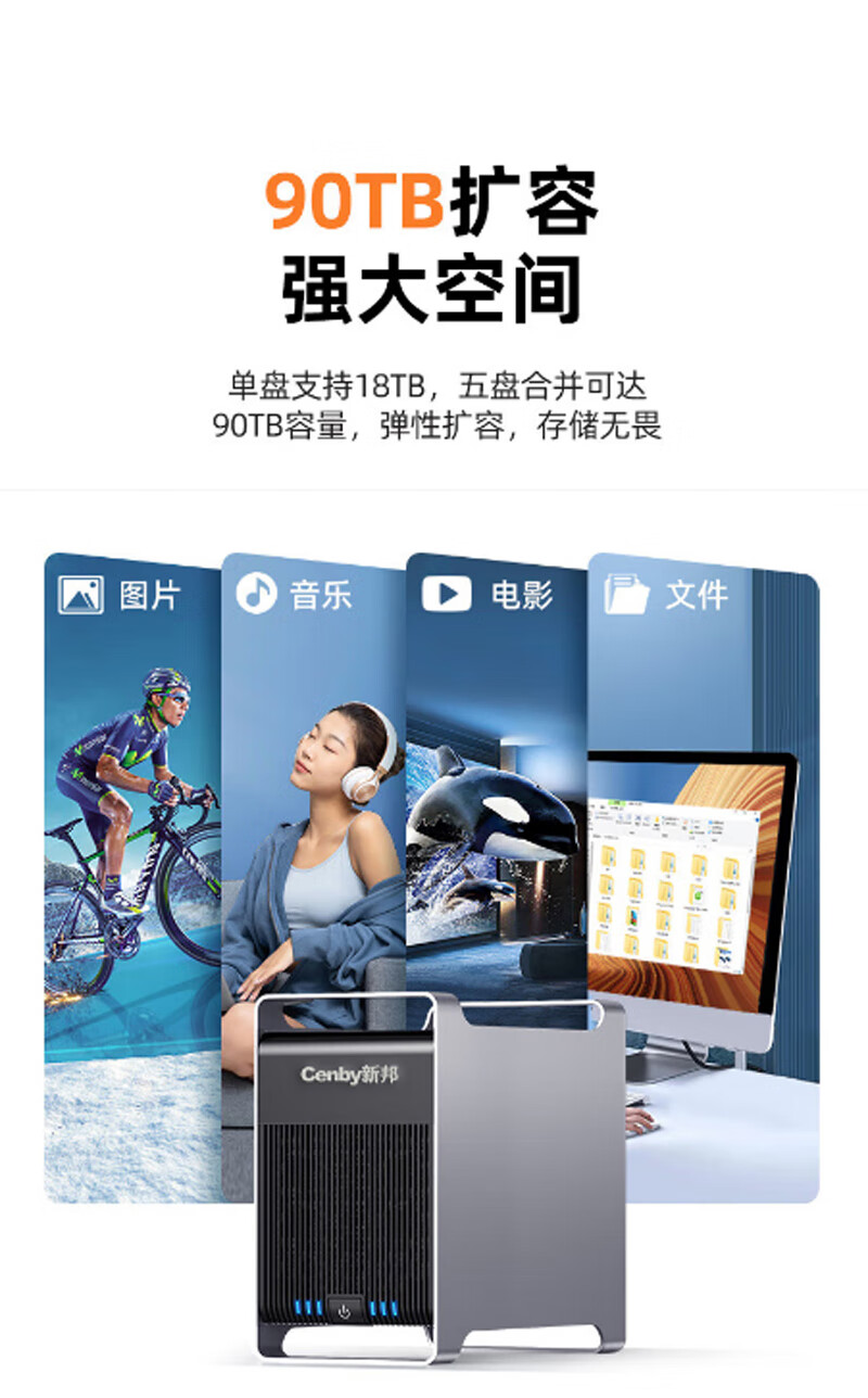 ¥1899.00Cenby新邦SD828(超高速阵列安全型)桌面存储24TB