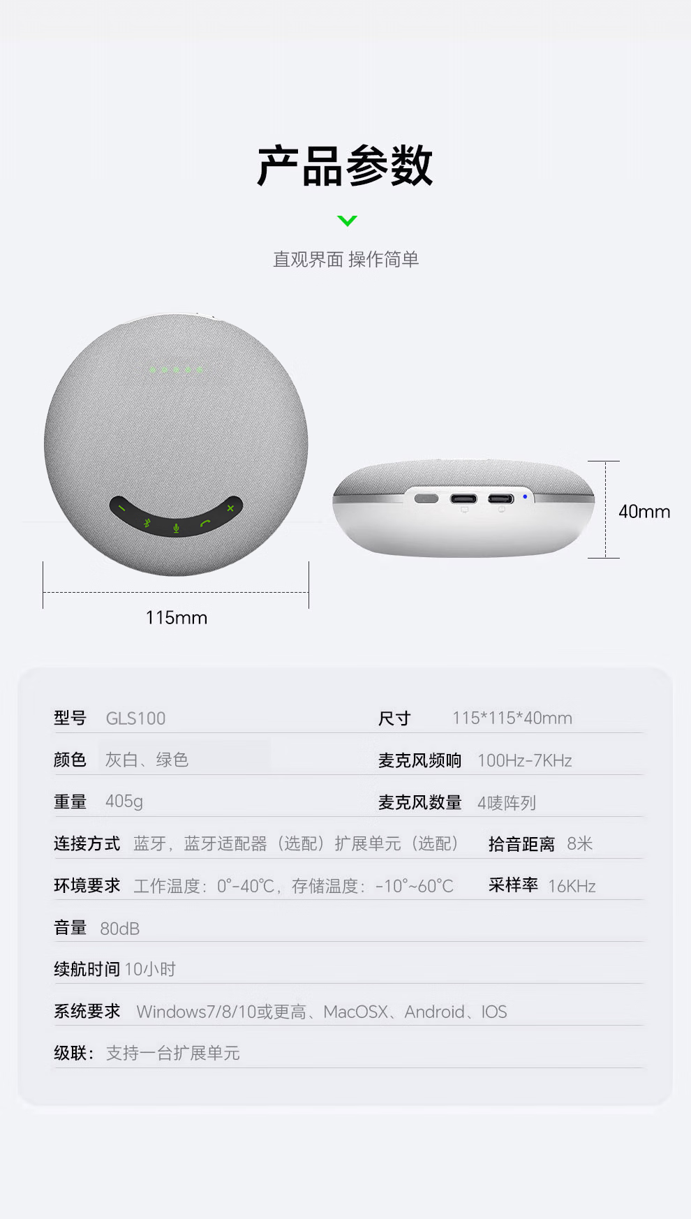 ¥2958.00因科美 全向麦克风 视频会议设备 无线会议拾音器 4米拾音半径蓝牙免驱连接扩音器喇叭 GLS100绿色