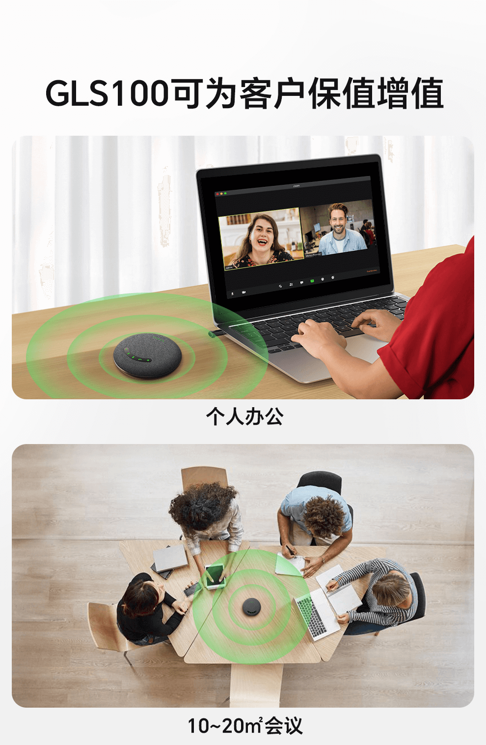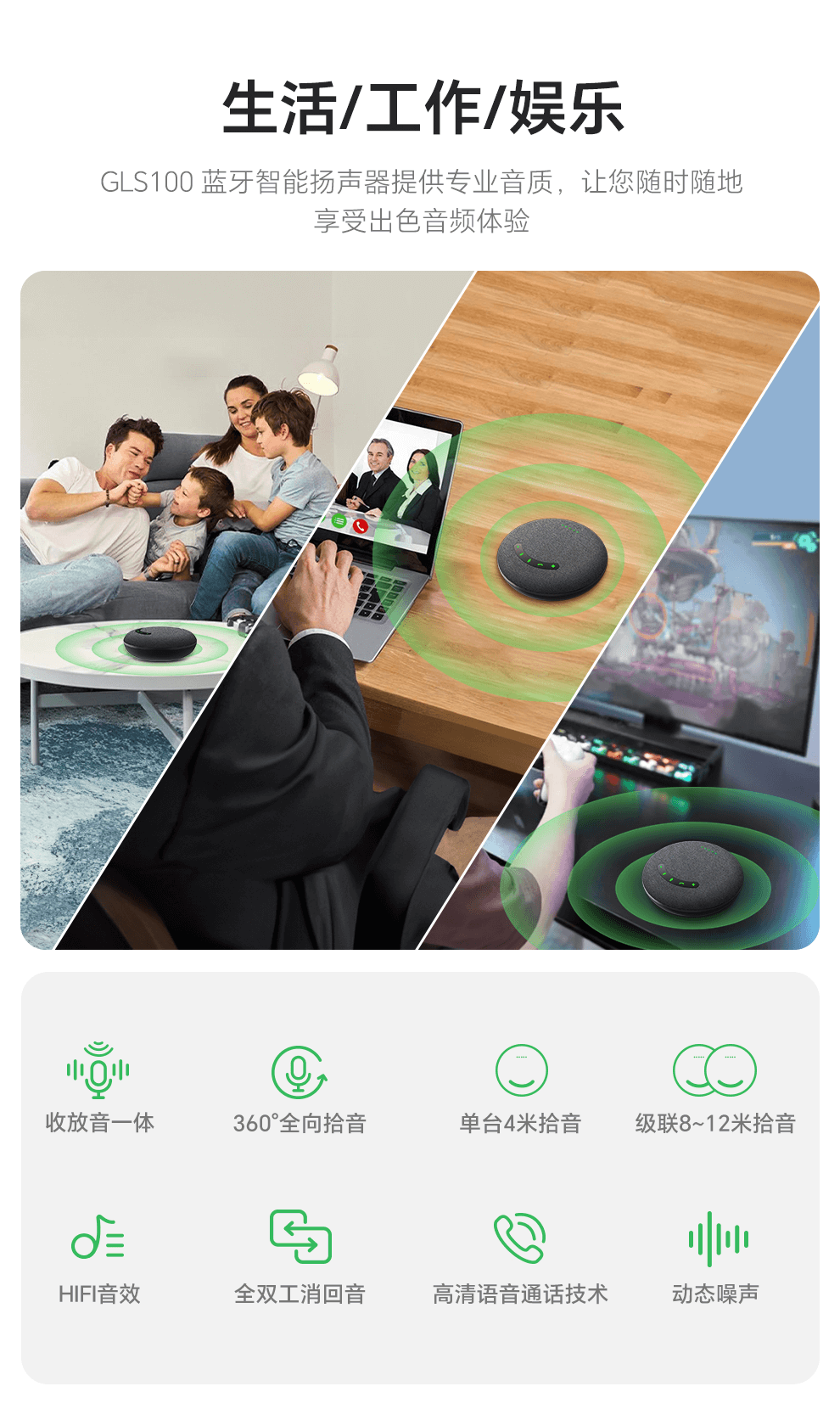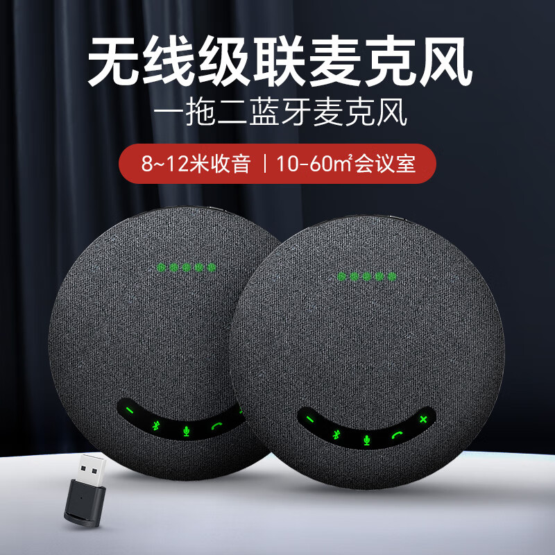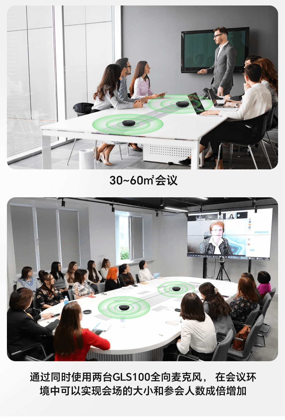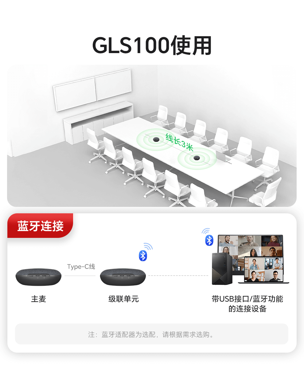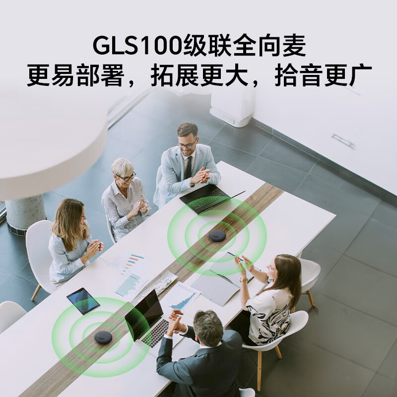 ¥499.00全向麦克风远程会议视频 12米拾音免驱蓝牙同收同放 桌面会议扬声器 GLS100无线级联款黑色套装含适配器