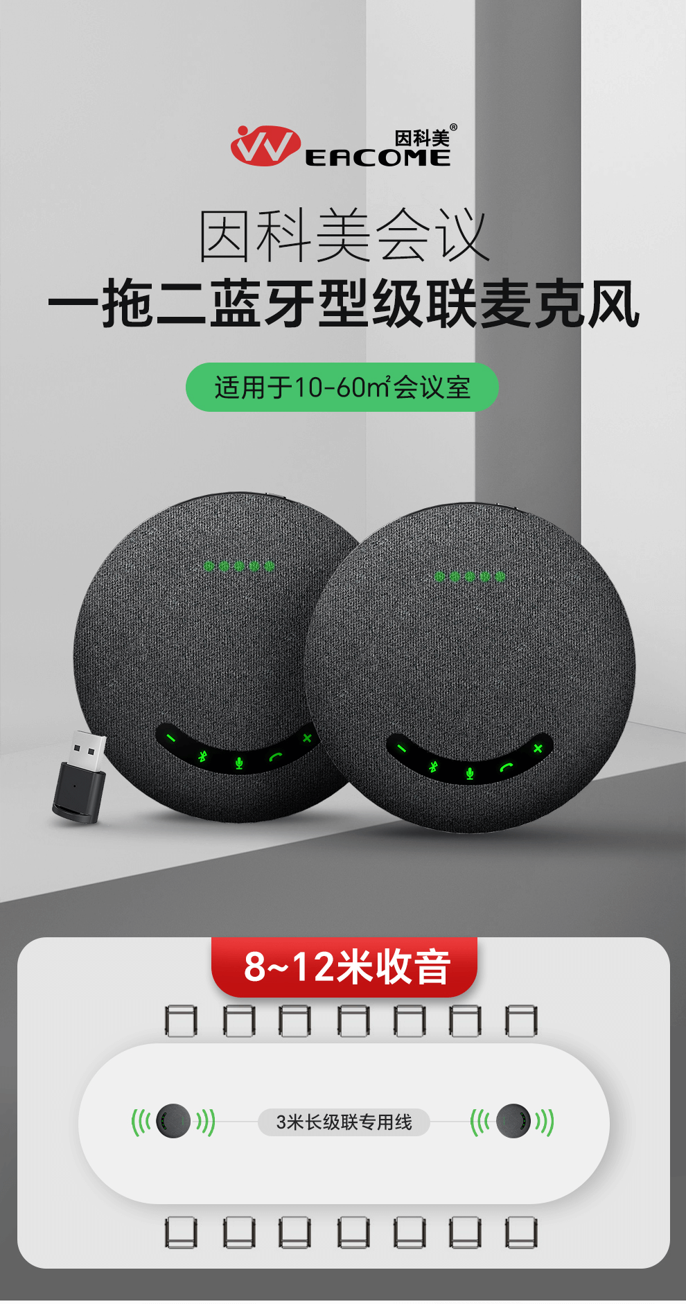 ¥499.00因科美 全向麦克风视频会议拾音器无线会议设备 3米拾音360°收音蓝牙型桌面扬声器喇叭 SV10B
