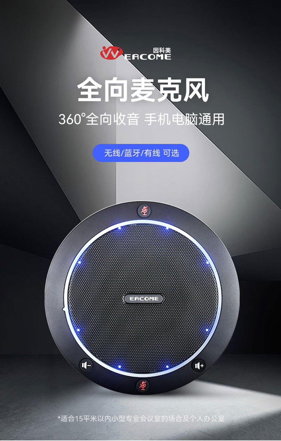 ¥30800.00因科美 全向麦克风 视频会议设备 无线会议拾音器 4米拾音半径蓝牙免驱连接扩音器喇叭 GLS100蓝色