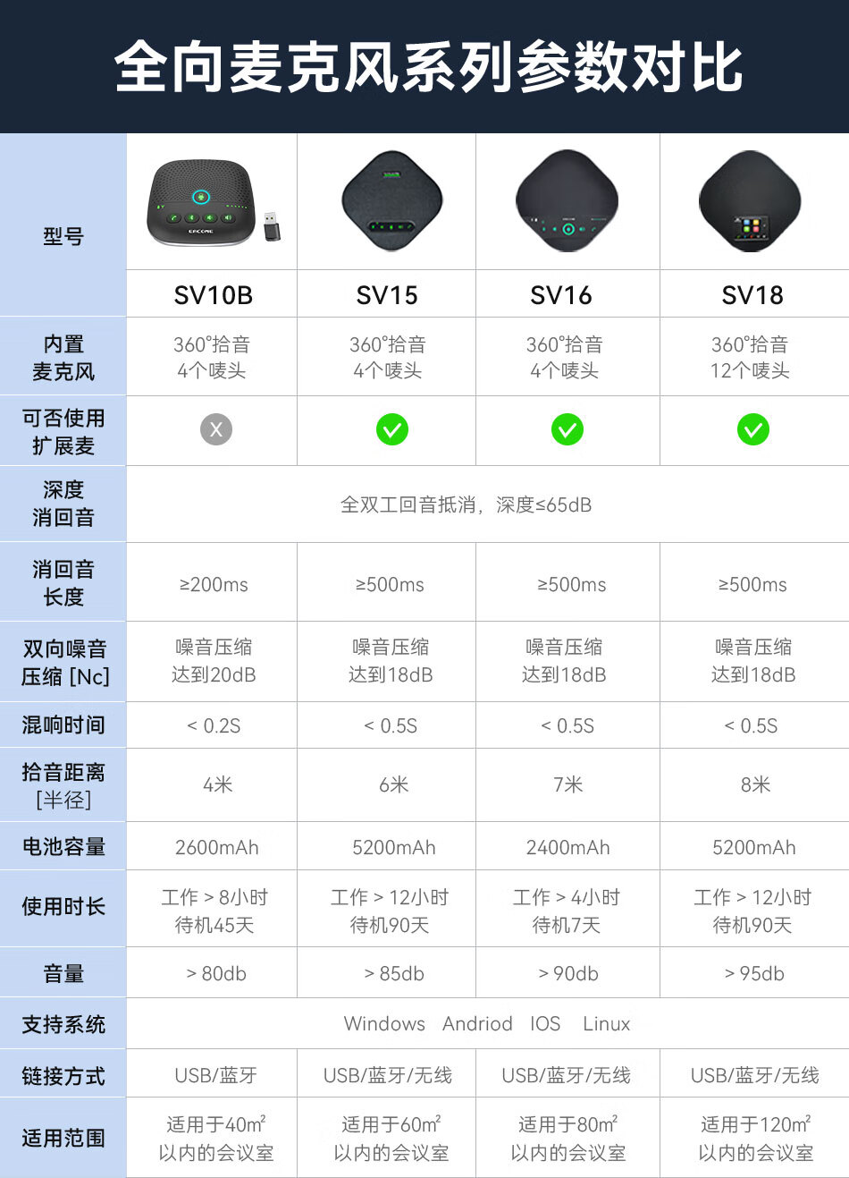 ¥999.00因科美 全向麦克风会议视频拾音器 360°收音4米拾音半径 USB免驱连接扩音器 多台级联 SV15UUSB款