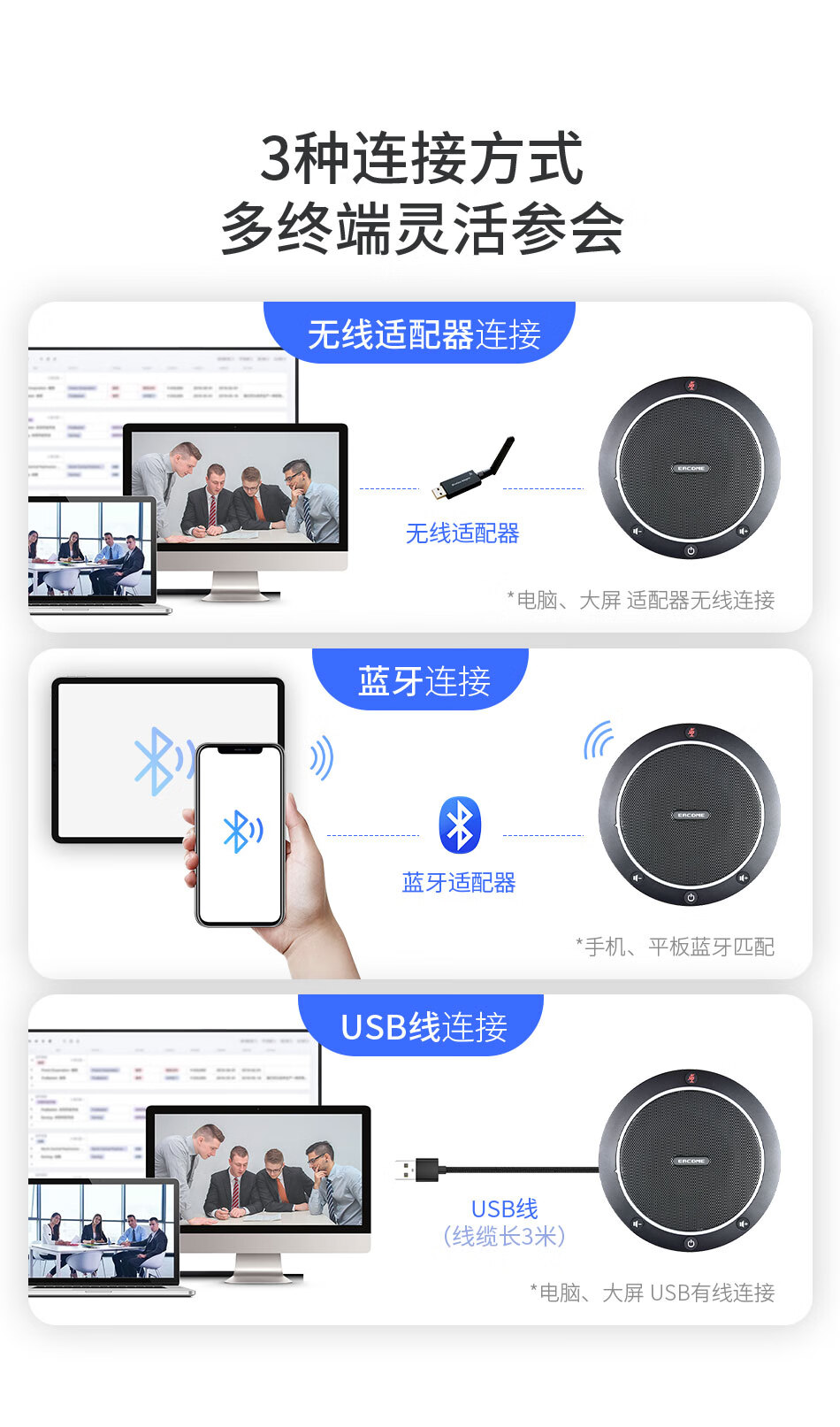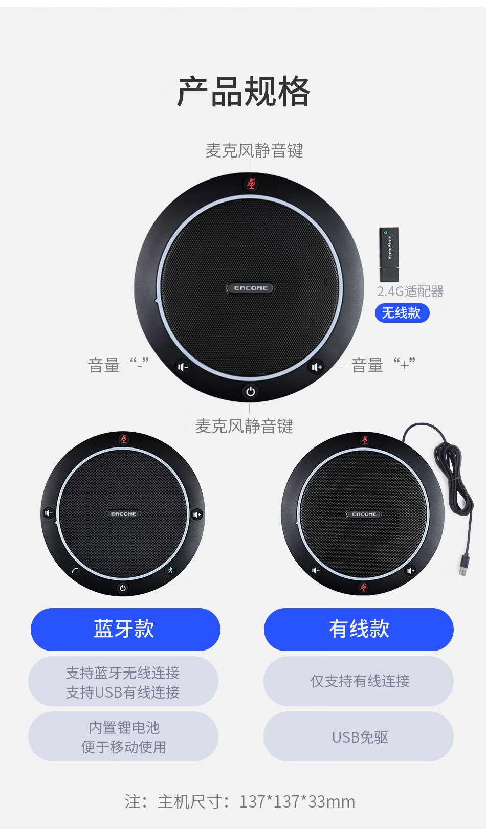 ¥999.00因科美 全向麦克风 会议视频拾音器 360°收音4米拾音半径 无线免驱连接扩音器 多台级联 SV15W无线款