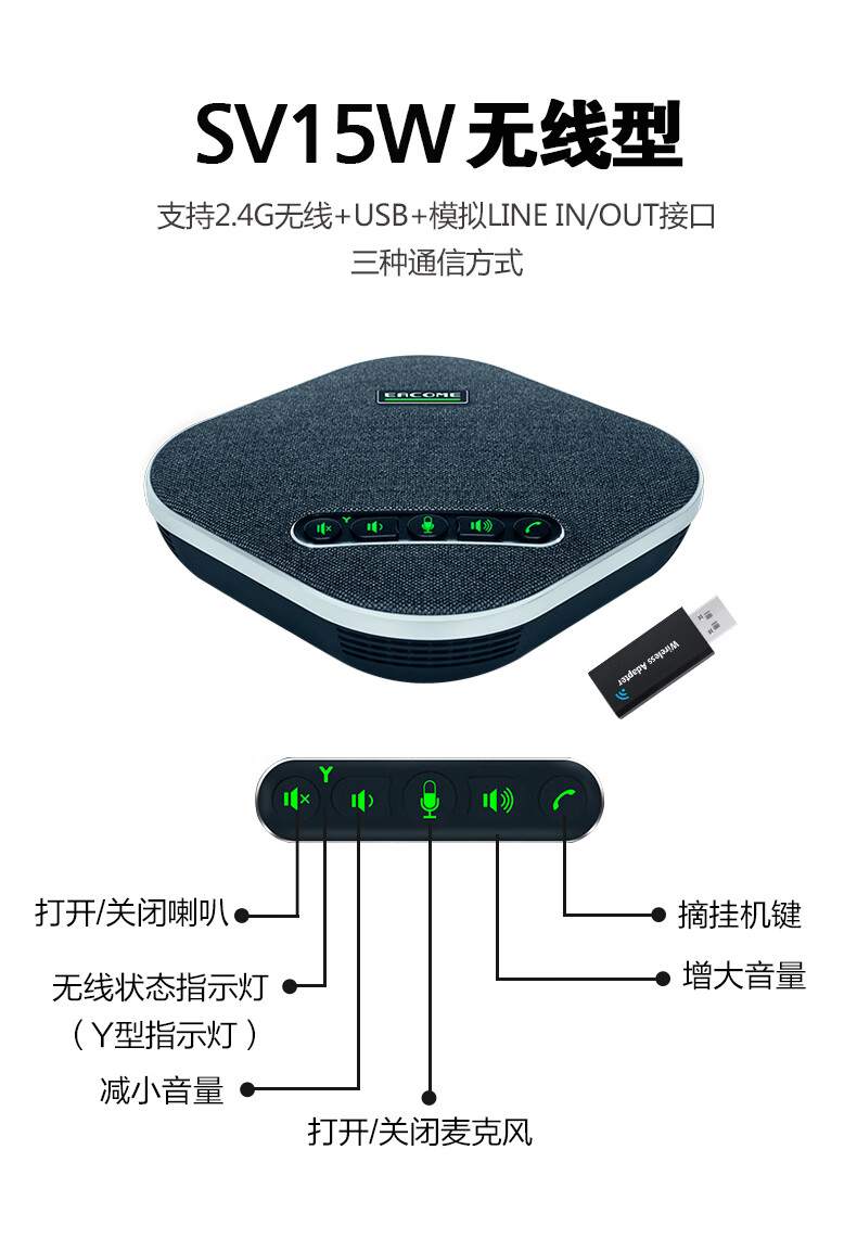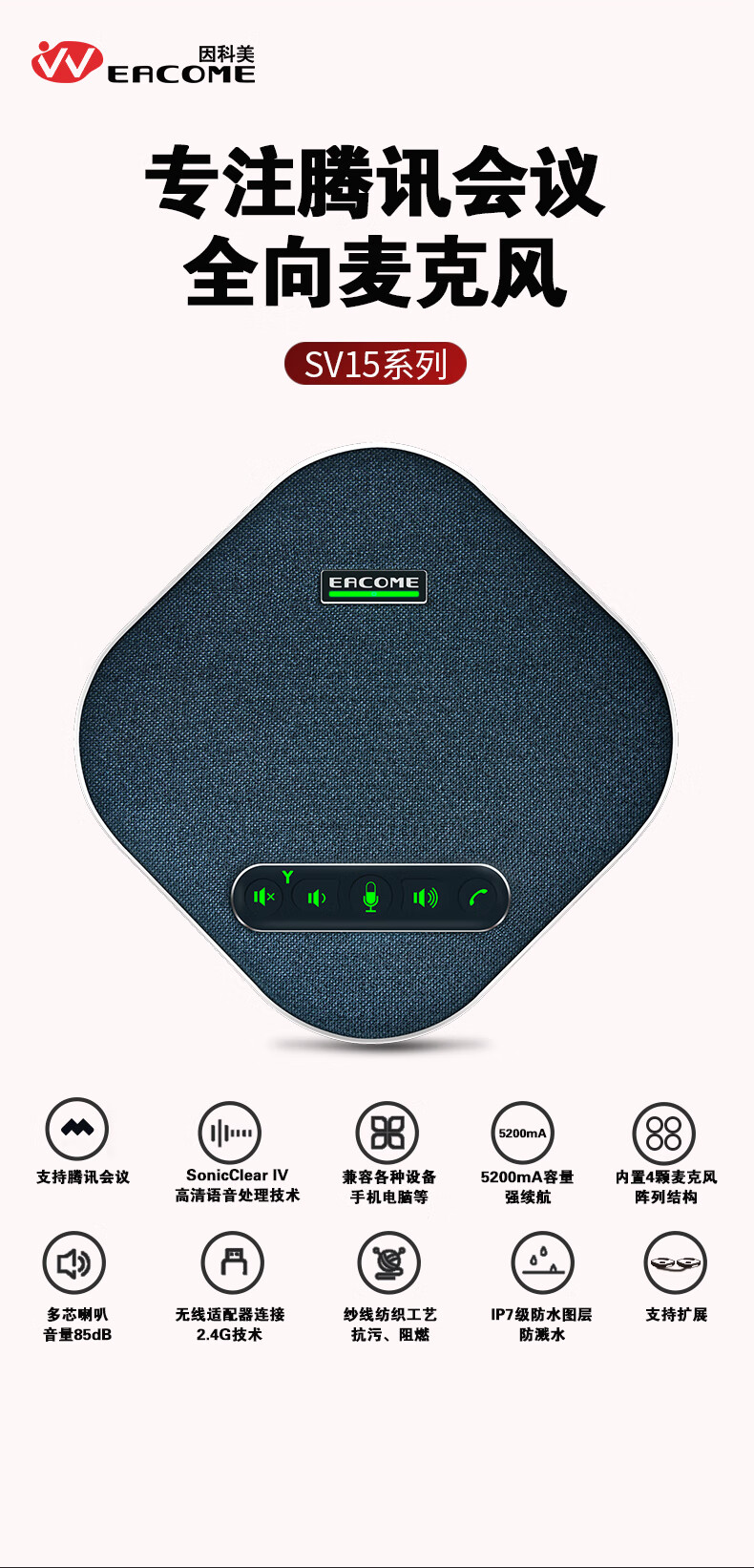 ¥999.00因科美 全向麦克风 会议视频拾音器 360°收音4米拾音半径 无线免驱连接扩音器 多台级联 SV15W无线款
