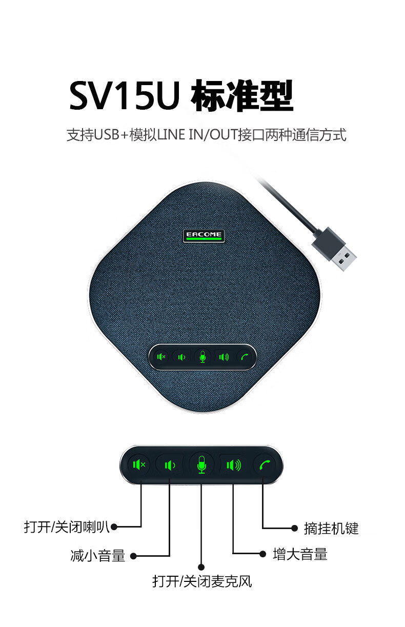 ¥999.00因科美 全向麦克风会议视频拾音器 360°收音4米拾音半径 USB免驱连接扩音器 多台级联 SV15UUSB款