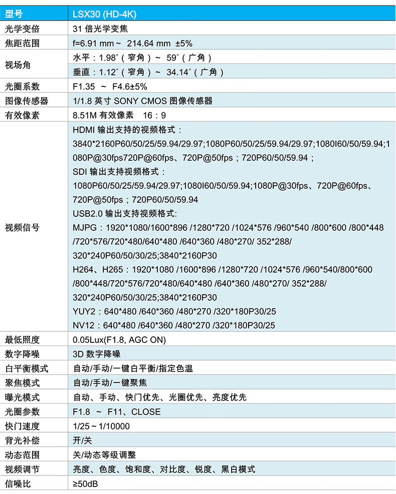 LEDSEE雷盛LSX30超高清(HD-4K)摄像机 自营