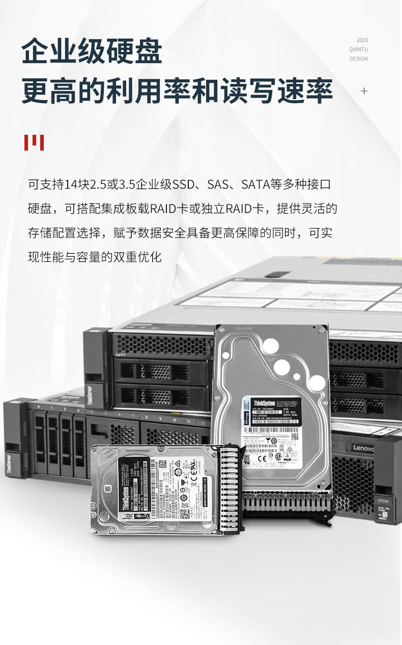 联想Lenovo服务器主机HR650X机架式双路至强 1颗铜牌 3206R 8核8线程 1.9G 64G内存丨3x6TB企业丨RAID5丨550W 自营