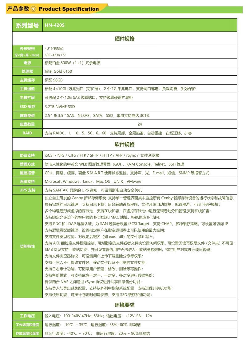新邦(Cenby)HN-420S 24盘位双电高性价比万兆网络存储 自营