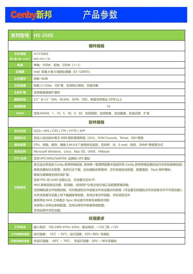 新邦(Cenby)HS-250S 16盘位双电高性价比千兆网络存储 自营