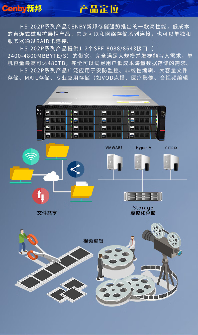 新邦(Cenby)HS-202P DAS直连式磁盘阵列16盘位SATA磁盘单电源影视4K非编阵列 自营