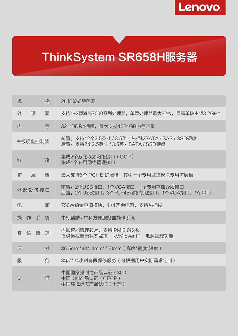 ¥99800.00Cenby新邦服务器HU2208V机架式2U双路 2颗intel xeon 银牌4310(12核心 24线程 2.1Ghz)4* 32G DDR4 RECC 480G SATA SSD企业级4T SATA 3.5寸企业级硬盘