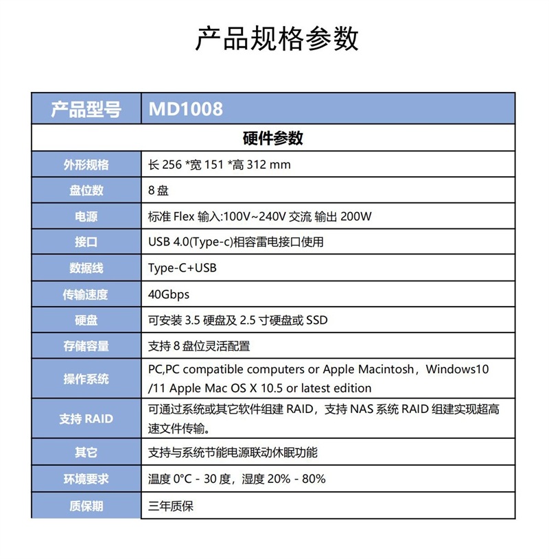 ¥93700.00Cenby新邦MD1008直连式 USB4.0兼容雷电3/4磁盘阵列8盘位存储40Gb高速传输硬盘阵列柜240T