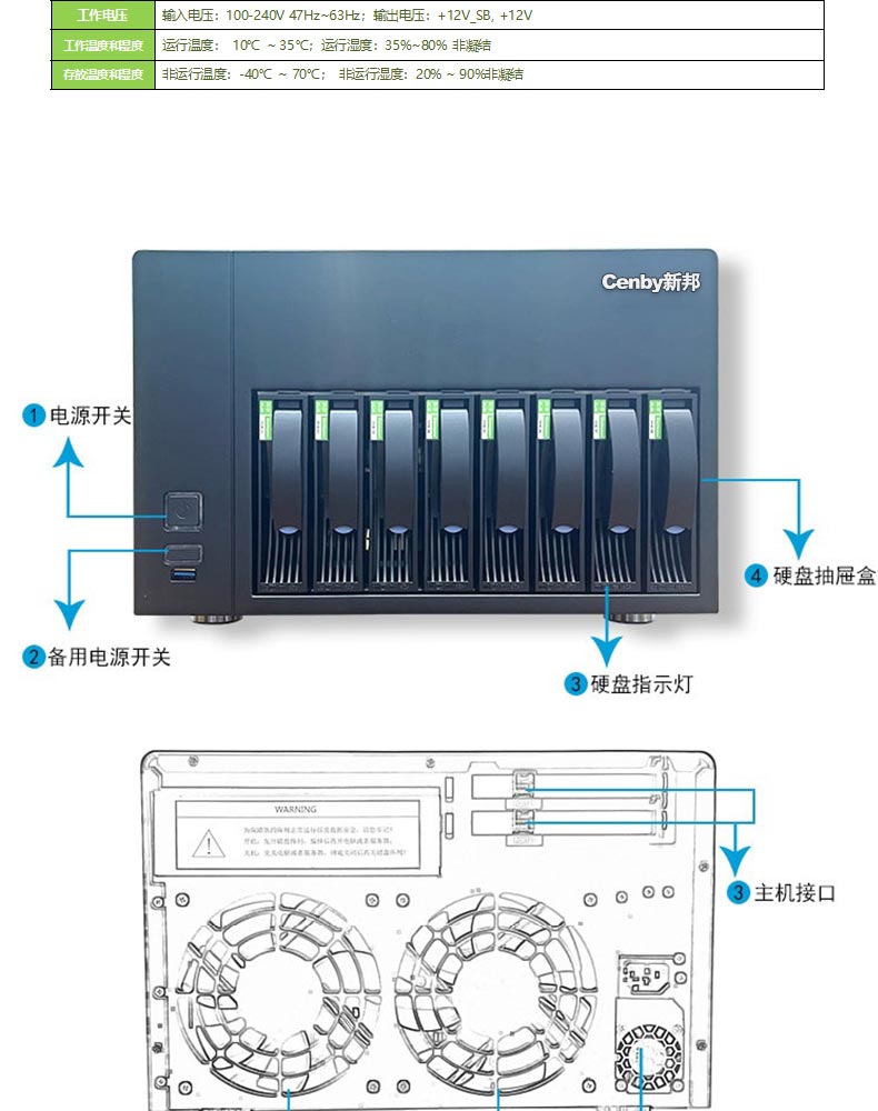 ¥569.00Cenby新邦HS-200P DAS直连式磁盘阵列8盘位SATA磁盘单电源影视4K非编阵列128T